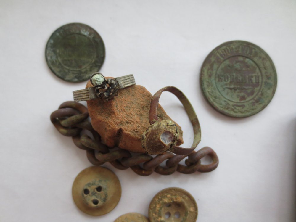 Чутка утолил свой копательский зуд: Нак сразу же был подарен комраду в честь его дня рождения, поэтому фот в мытом виде нету. Кто скажет что за гильзы №№ 3 и 4? Два колечка , одно из них серебрянное. Подскажите пожалуста сайты по царским пробам? Плиз! Удивительно чОткая пробочка от водки-вина, осколок от рынды-колокольчика с "античной патиной" из за обилия химикатов на поле. У меня все. Заранее благодарен всем отписавшимся.