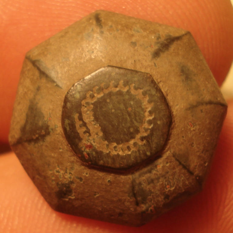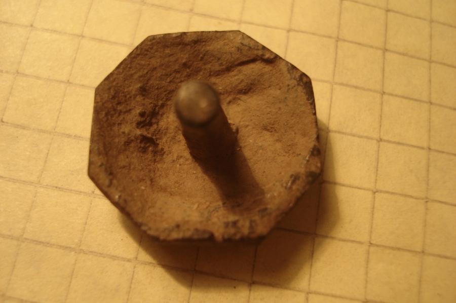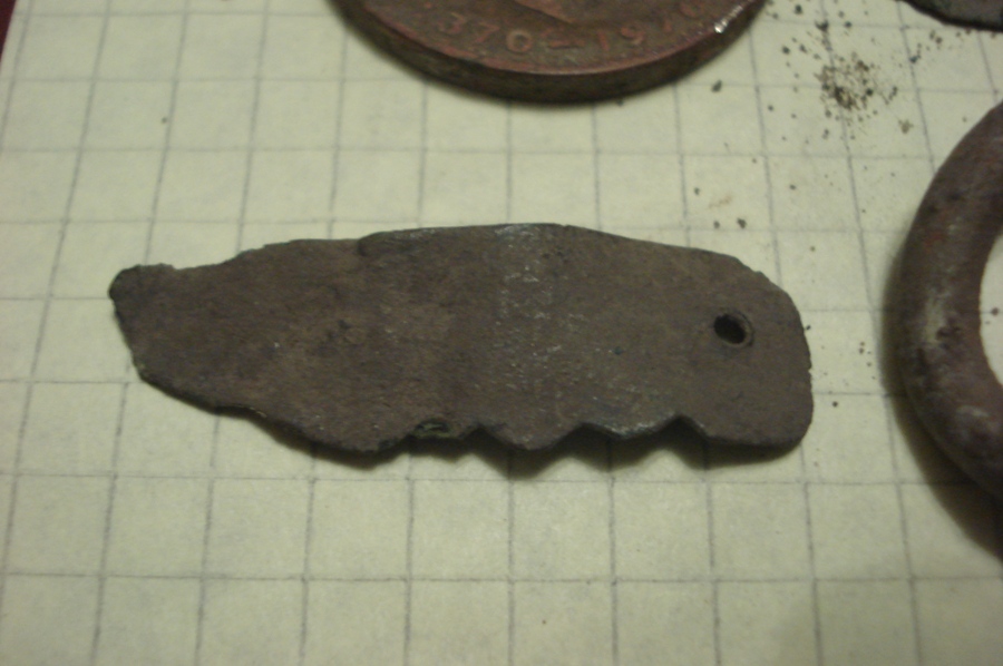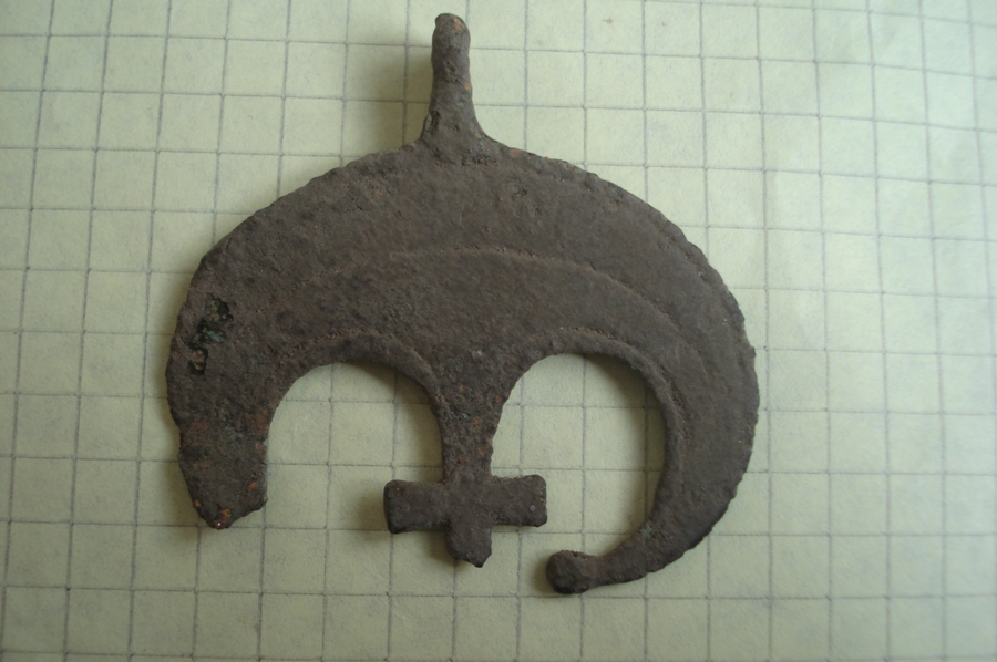 Есть похожий у меня но больше размером ,определили как запонку на плащ ,типа фибулы.Но может заклёпка на пересечении кожаных полосок . Фото: Я несколько раз поумничал типа счас выровняю , больше не ровняю, металл древний и в большинстве случаев при вмешательстве приводит к утратам. Я бы не полез , особенно когда внутри пещерки рыть или стучать начнёшь .......... И никто не узнает где могилка твоя..