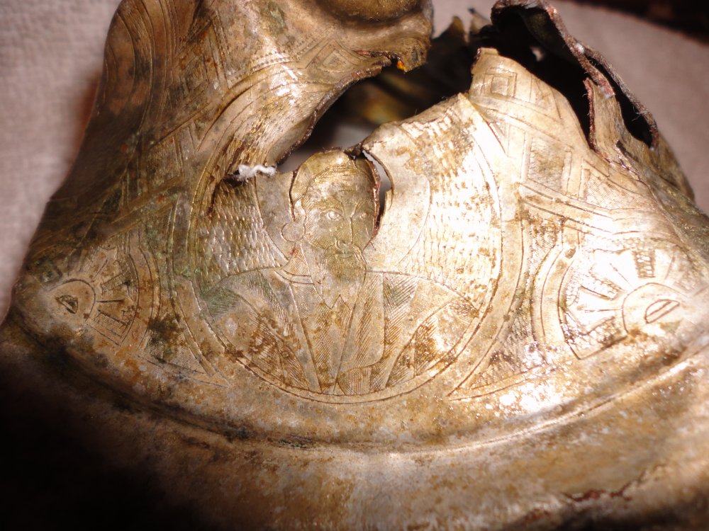 Интересная вещь . Аккуратнинько выровняй всё , думаю казатчина в ухе серьга ,думаю изображение какого то лидера ,не поленись выровняй и покажи . Очень интересная вещь. Давай куплю, определись с ценой.