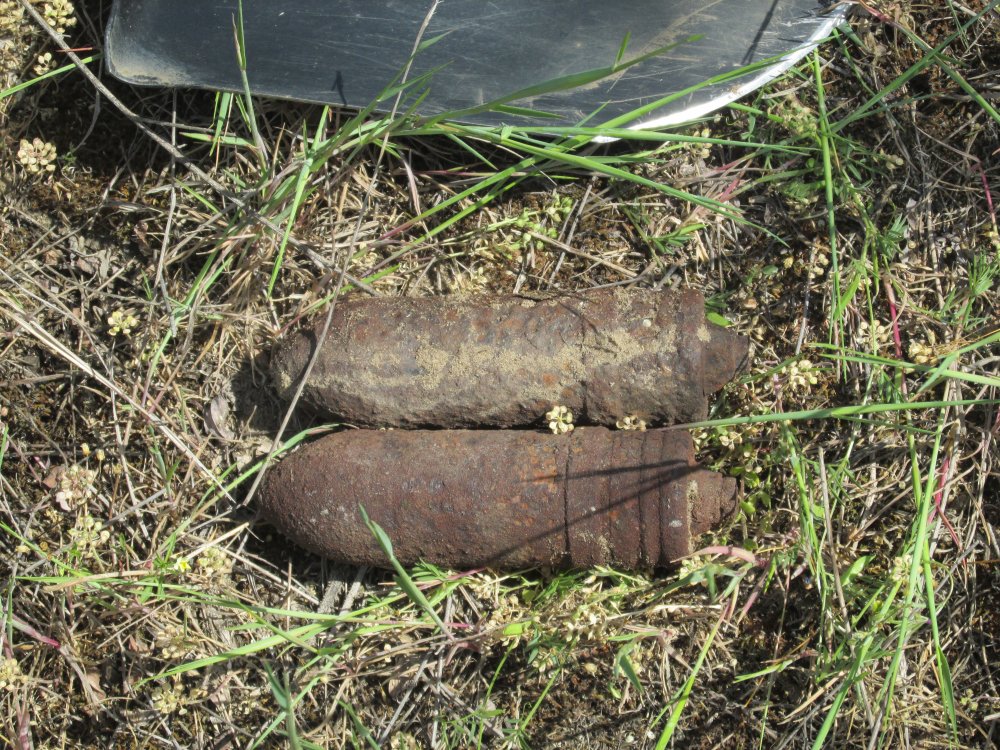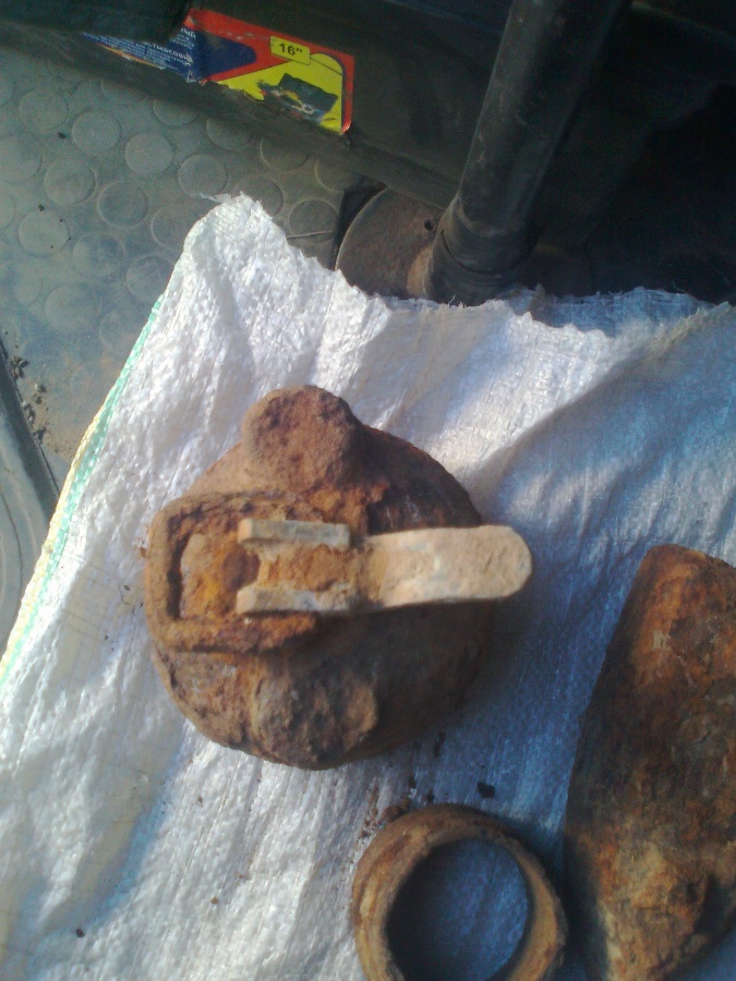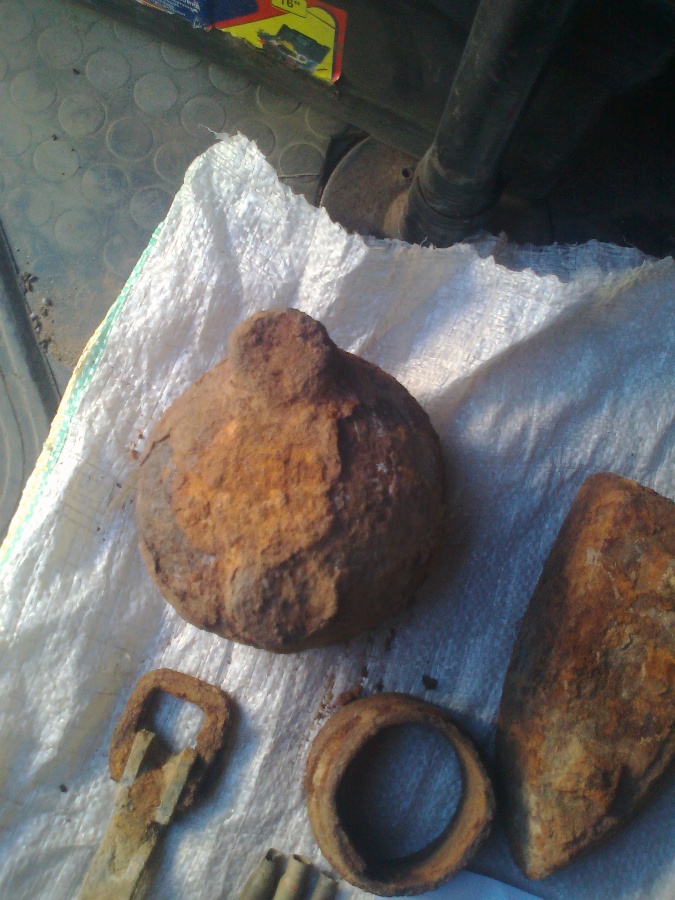 А у нас только гильзы(((( Причем одна интересная, таких еще нет. На ней маркировка 10 42 emp s. Что за зверь, непонятно (первая на фотке). Ну и интересная штука из латуни типа навеса с знаком N 2. Да, и еще 2 лежавших на земле фигни, наверное все их уже видели и пинали))) , интересно, от какой они установки.