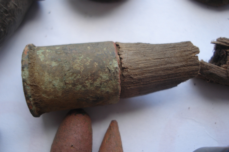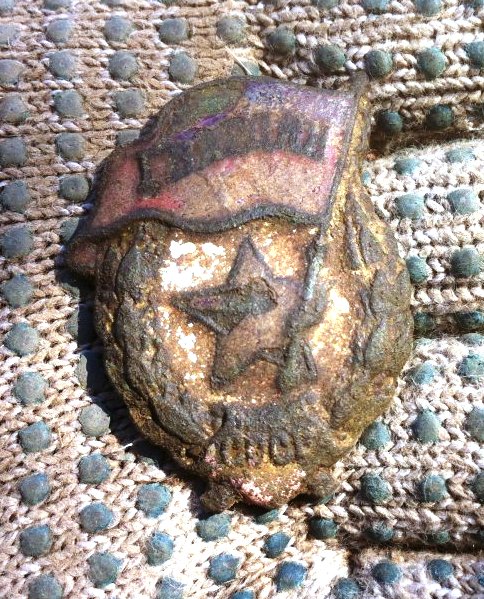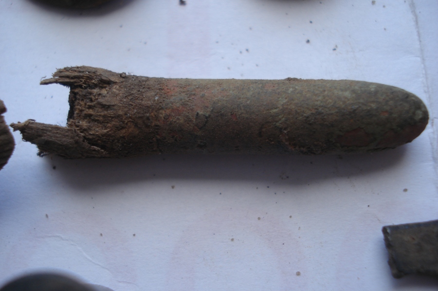 Всем привет ! Azov помогу чем могу при личной встрече , звони !!! Прогулки на Чабурде еще дают кой чего . Ехал за попкой ) для комрада и понеслась лопата рыть ) . Игорь нашел недостающую попку ) и с ней три пуги убитые и две пули . Подскажите , что за девайс на последнем фото и что за гильза с клеймом ?