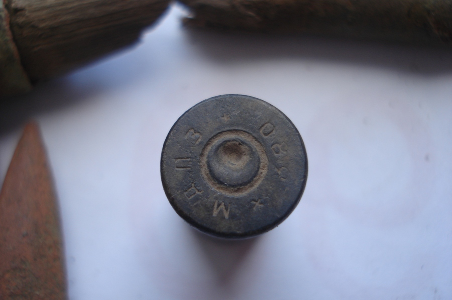 Девайс похож на остатки охотничьей пули, гильза - московский дроболитейный патронный завод, предположу, что от смит и вессона 380 калибра.