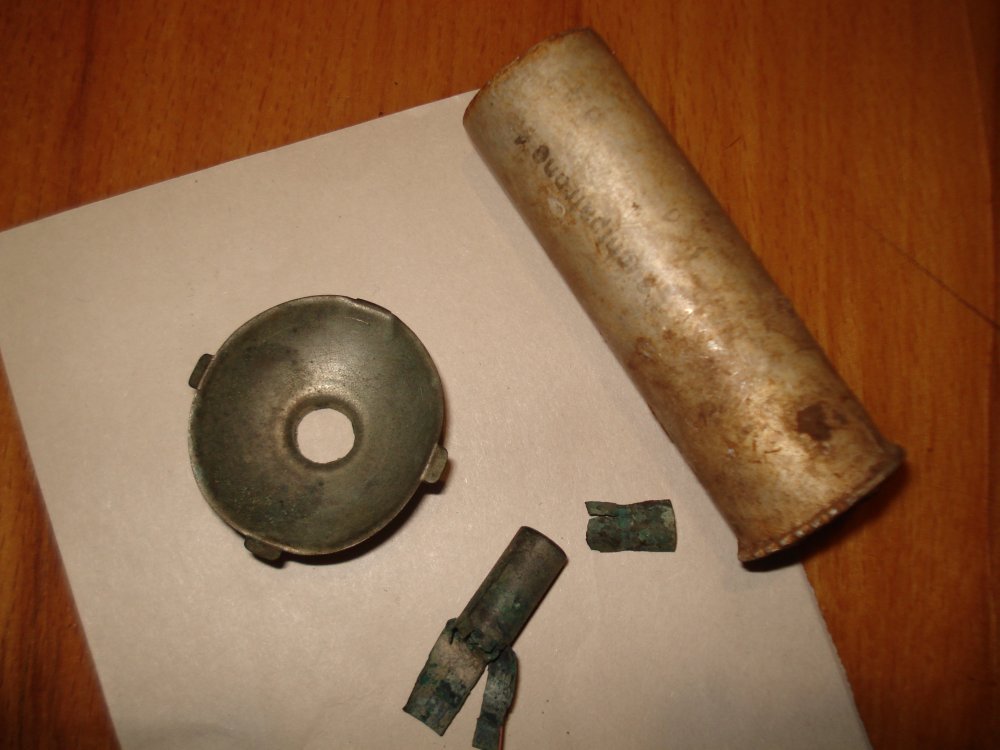 продолжение. по ехал в Лес докапываться) бочку и в 50 метрах рядом нарвался на позицию, вроде ганс. не понятное железо частями разное. Хотелось бы знать что за запчасти. И чётко виднелись вырытые позиции,с сильно уже заросшими деревьями, опять темнело не успели уже втроём с двух.Гильза с ракетницы ещё и вроде с фонарика часть.И воп не большой рядом с сбросом, но вроде ствол не прошел. вот вам без карт вышел в лесу по грибы и кто знал.Просто на у гад. Даже и не думал что вообще что то там могло стоять.