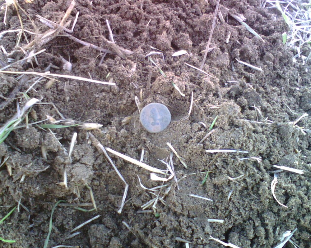 Ну приблизительно до 10см. Это я ставлю катуху на 14 кгц. и тогда вся мелочь идёт и монеты руба. В стандарте я хожу с пятнашкой на 3 кгц. или десяткой на 7 кгц. 14 плохо тянет медь посему редко её ставлю , только если охота по татарочкам или чешуе.