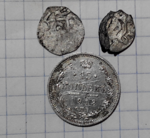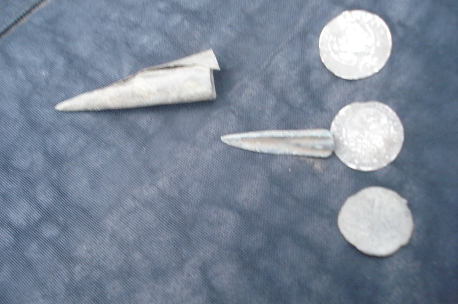 гильз всяких могу и разных непонятных штук а на монеты я сам жадный . попадаются какие то свинцовые штуки с дырками , разной формы , в основном конические , где то в ведре валяются
