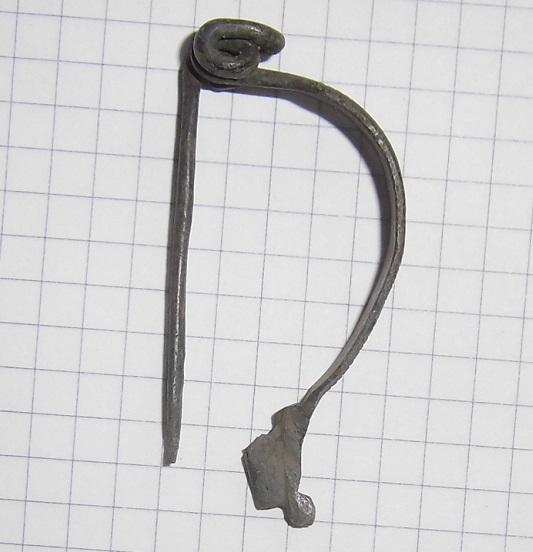Вот уж не думал, радует "республика Ч " : Материал: бронза. Размер: длина 57 мм Вес: неизвестен Техника изготовления: Датировка: I - II вв. Описание: Пружинная фибула позднелатенской схемы с гладким корпусом и с хорошо выраженной кнопкой на конце пластинчатого приёмника, т.н. "воинская". Дужка декорирована продольными рёбрами, деформирована (погнута почти на 90гр. недалеко от пружины). Приёмник треугольный. http://domongol.org/gallery/image_page.php?image_id=7200,