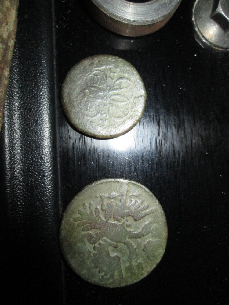 Сегодня опять три денги, заколебался я их собирать и чешуйка , плюс нак красавец , такой формы у меня ещё нет , черенок что интересно шестигранный.