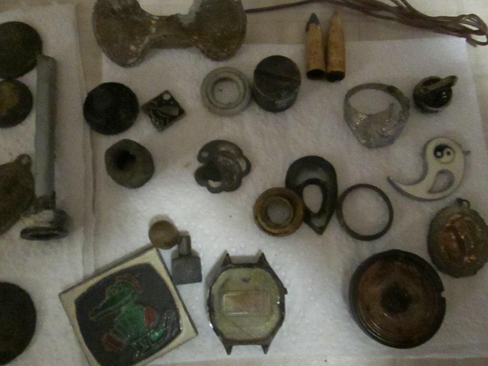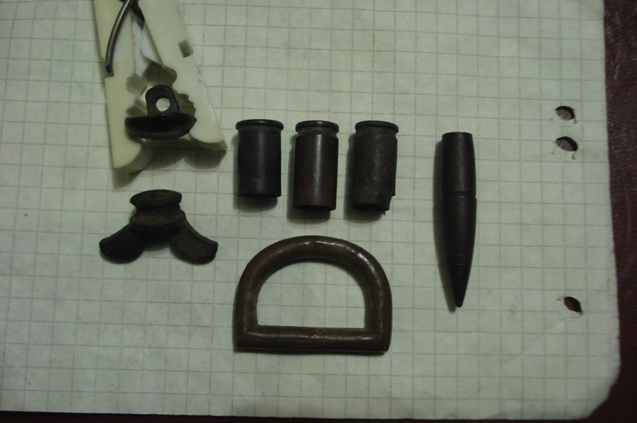 Вот мои скромные находки ) . Еще одну мини гильзу нашел , крайняя справа . Закрутка с чего с керосинки ? Пуля тоже хороша .