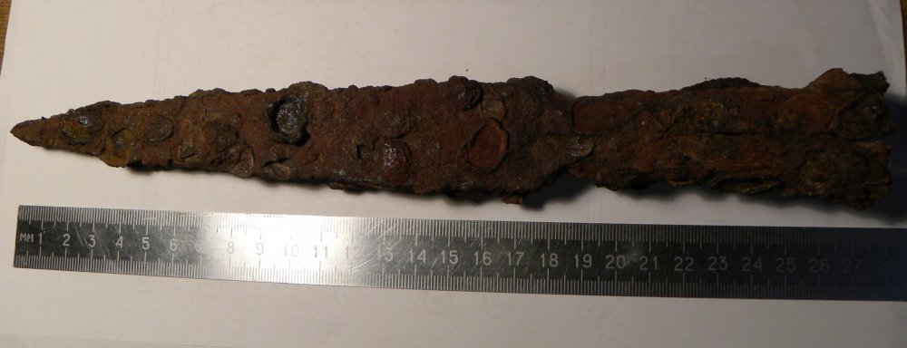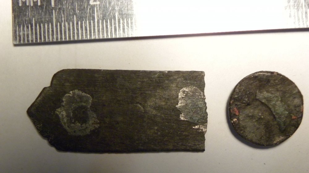 День освобождения Херсона ознаменовался совершенно не военными находками: по -прежнему прет серебро, теперь татарское.Ременная накладка и навершие перстня,увы, без самого кольца и видимо камушков. И товарищ там же нашел наконечник копья.Тут даже без вариантов-"вток" или не вток... Почищу-будет фото повкусней.