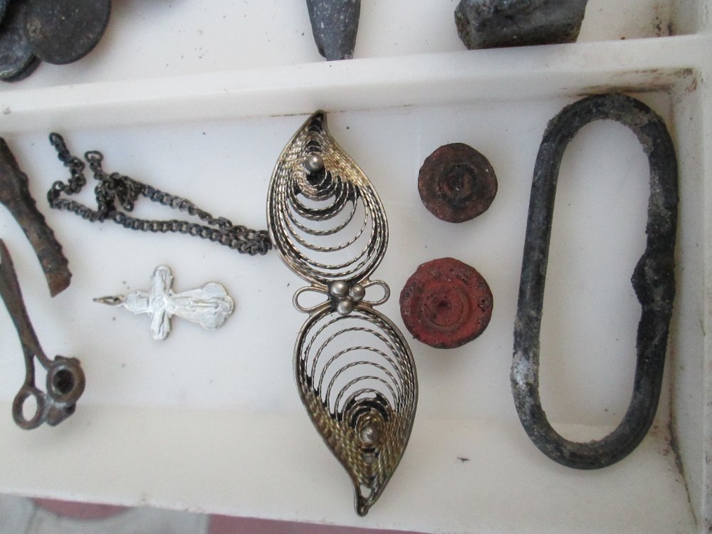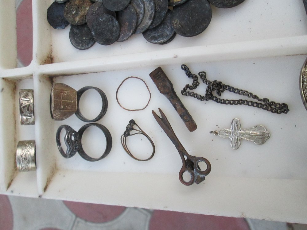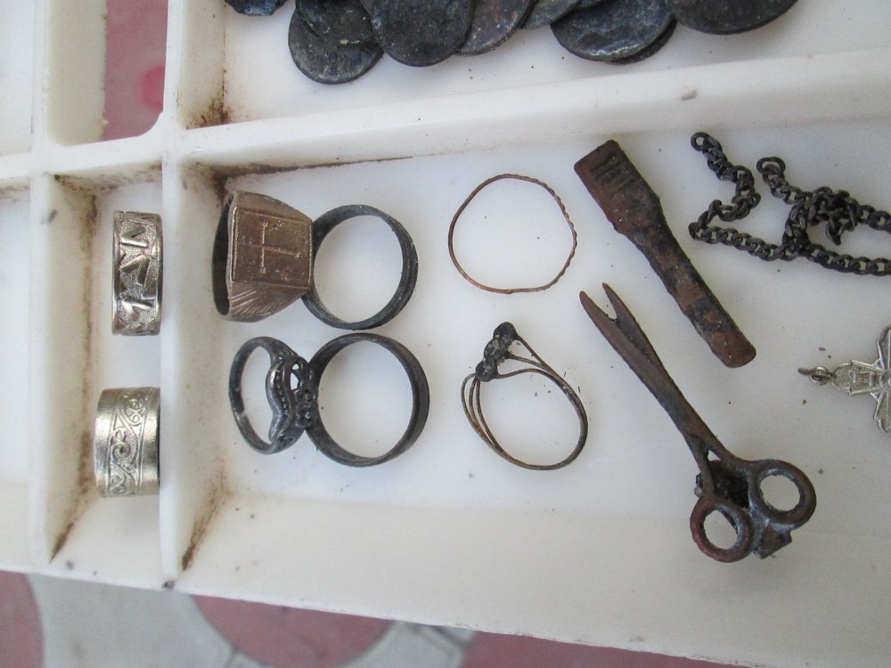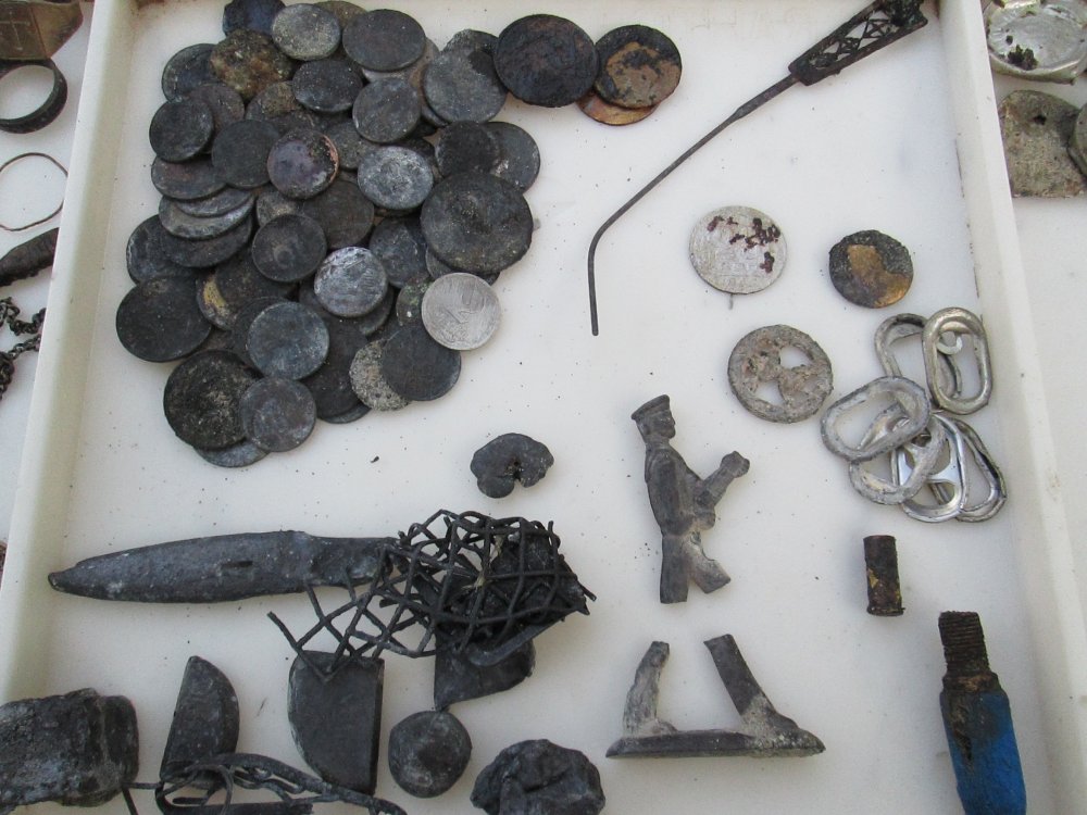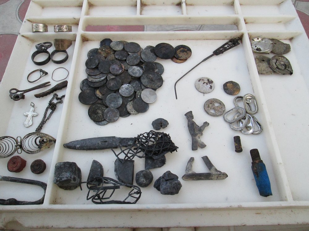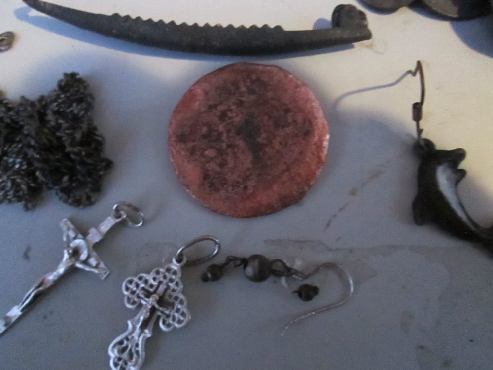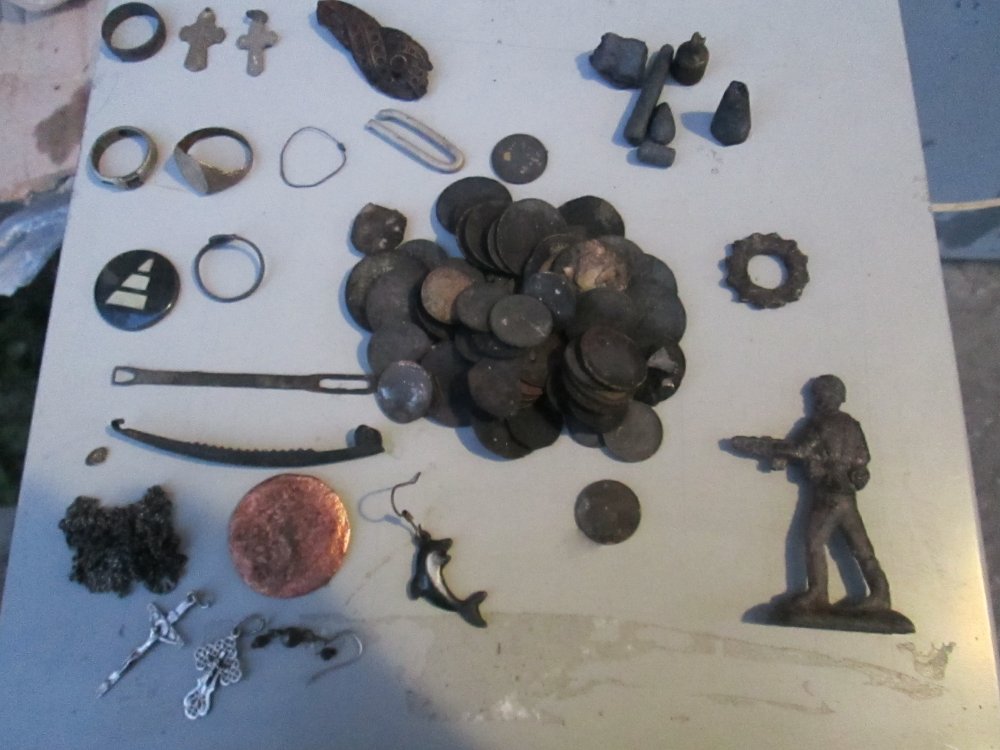 Вот совершено случайно на праздник получился выходной и так как дома грех работать, решил посвятить день разведке новых мест, но так как все таки праздник и надо было водку-пиво пить а не лазить по склонам рек и балок, то удалось проверить только четыре из пяти запланированных мест... И практически каждое принесло по одной находке - можна было после находки сразу менять место. а то из жадности еще по пару часов косил траву прибором безрезультатно. Находки вроде неплохие: пятачок второй в этом сезоне в сохране - порубил лопатой, был на полтора штыка в сплошных камнях, какая-то тонкая серебряная монетка в плохом сохране то-ли поляки то-ли немцы судя по орлу, и два наконечника при том тот что больше в сильных окислах и вроде не точен был наверное монетка-стрелка... Остальные монетки с прошлого воскресенья: копейка, двушка и двадцатник похоже бывший в огне - был таким черным что поначалу думал что это советский трояк, а так все монеты Александра третего и колечко с надписью КАВ КАЗ...