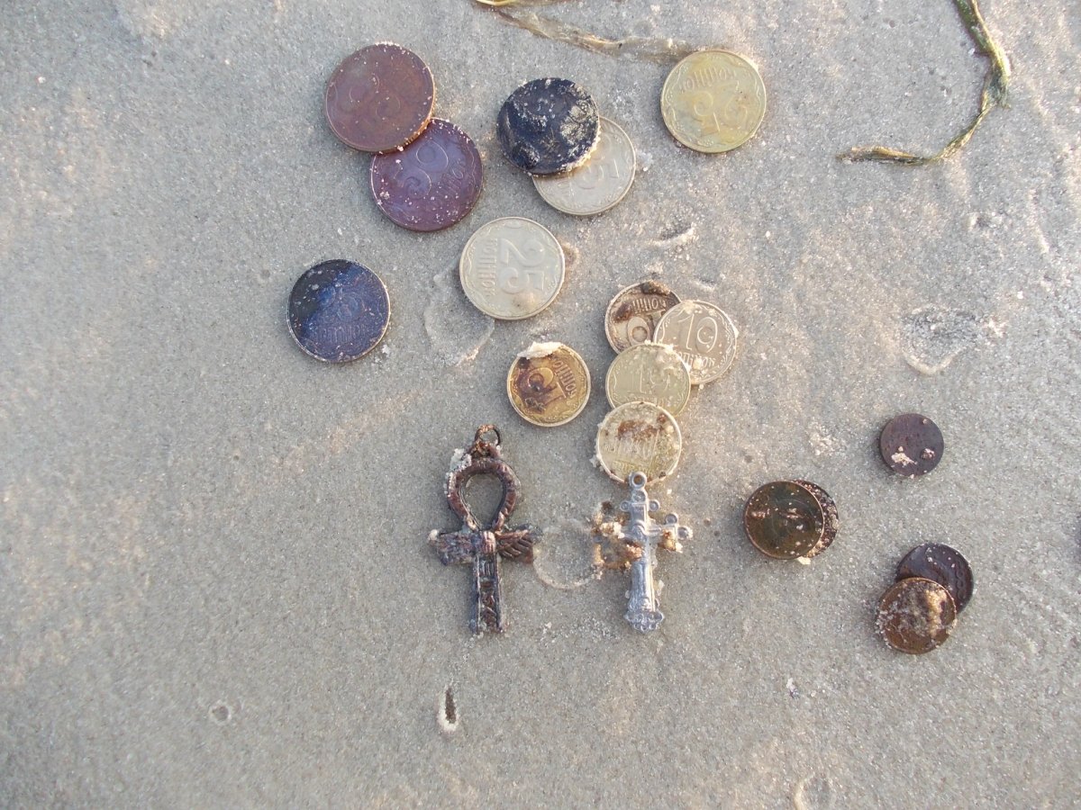 Небольшой отчет)) Сегодня поехал на потемкинский остров, потащил меня товарищ, рассказав что там казаки клад прятали))) сев на паром в гидропарке добрались к месту. прежде чем вышли с причала на нас кинулись баба с дедом(охраники) - вы кто такие? кому приехали? я - просто погулять, тут что частная территория? потом товарищ не дал деду ответить начал расспрашивать как пройти к озеру какому то ну дед рассказал. ходили мы 4часа по этим дачам))) живого места нету, ни одной полянки, всё застроили(( пришли назад к причалу ждать паром, и застали драку... я жалел что не заснял на телефон. ситуация такая, приехал вечером рыбак на пароме, за ночь нажрался и спал там на лавочке возле не большого пляжа, утром он иногда вставал и рядом обсыкал все и вся...охранница сделала ему замечание, он послал всех нахер...дед охраник стал тоже быковать на алкаша и между ними завязался конфликт с толканием друг друга, дед не выдержал схватил молоток, алюминиевый для отбивных ,пару раз сумел треснуть по башке, у чувака всё лицо в крови...пошел умылся и обиженный сидел на лавочке с нами ждал парома. потом мы от одной тетки узнали что есть переправа другая от туда быстрее доберемся на остров гидропарка. мы побежали туда, так как 3часа пришлось бы ждать. идем по улице и нам дорогу перекрывает мужик с дубинкой! - а ну стоять! вы чо тут делаете!? я ему - вы чего? мы просто приехали клад искать)) - какой клад! вас уже милиция ищет! - мужик ты чо какая милиция? мы ведь ничего не сделали. он начал рассказывать что когда мы вышли с причала, дед охраник который нам рассказал как пройти к озеру, он же и бил молотком рыбака, позвонил этому мужику и сказал что к ним на дачи приехали два наркомана)) с полным портфелем конопли чтобы найти заброшенный огород и засадить. и он вызвал милицию))) я мужику объяснил кто мы и чем занимаемся)) чувак посмеялся сказал что монет тут никто в огороде не находил, но у него на участке есть клад! я предложил свои услуги))) он отказался сказав, что клад ему приснился но сон все равно вещий)) когда добрались в гидропарк бобиков с милицией не встретили слава богу)). коп удался только утром когда я ждал товарища. успел пройтись по пляжу