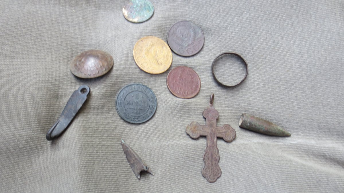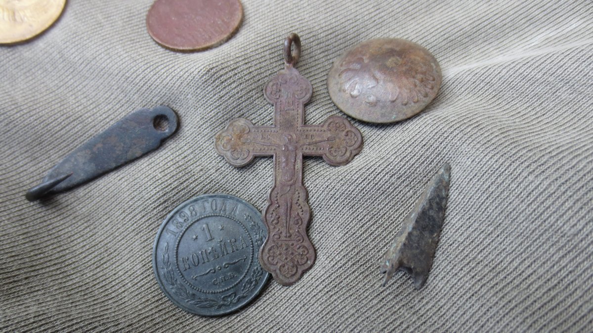 Всем доброго времени суток!!!! По высокой траве продолжается....отчет за 2 выезда...к сожалению одно место не оправдало надежд...мы даже травы там выкосили...а оно так с нами...но ничего наше еще впереди....главное не сдаваться!!!! Пятак был с масоном пока какой то хуторян с него медальной не сделал.....грустно...Крестик порадовал да и брошка так ничего 1!!
