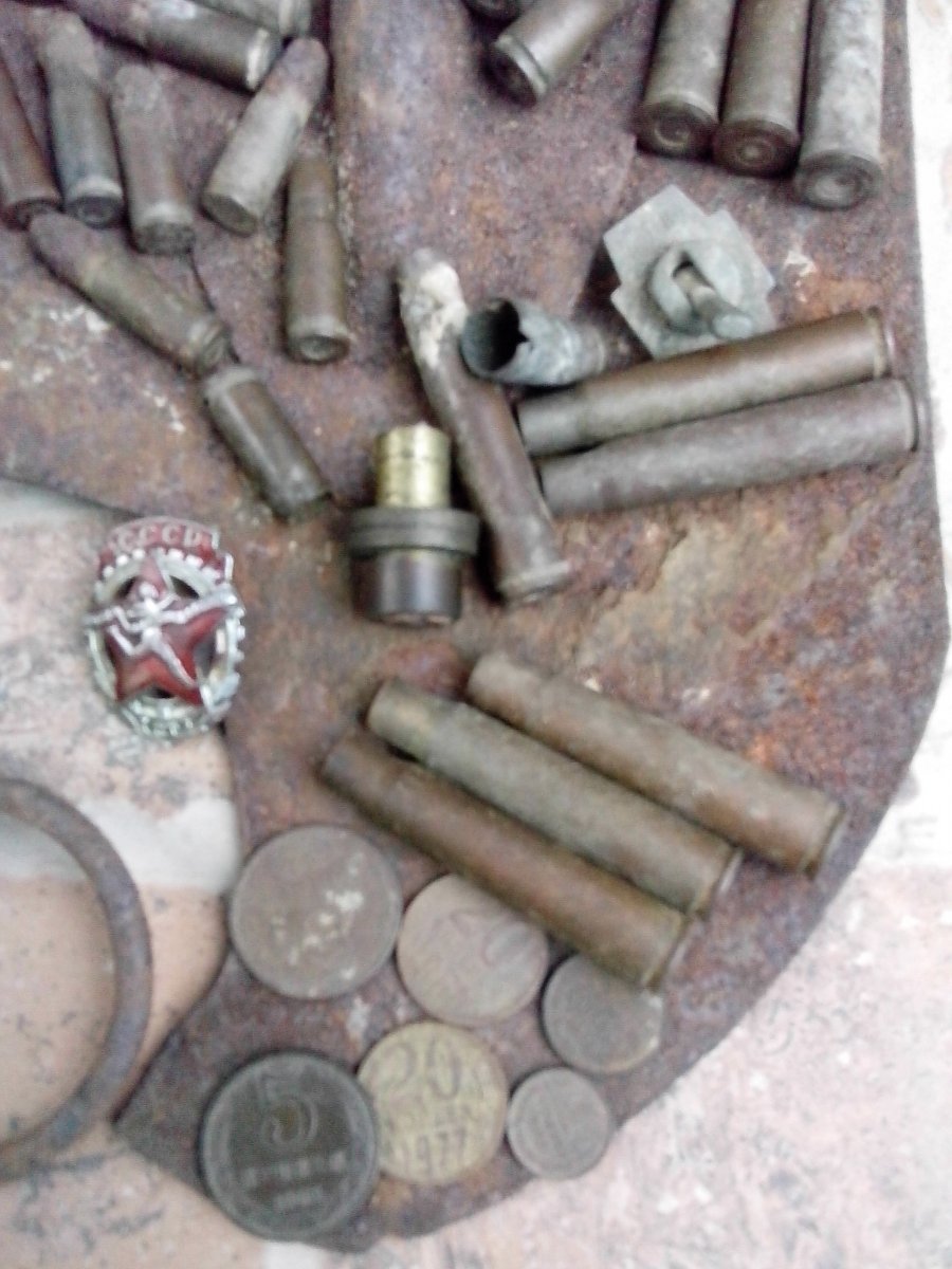 Очень жаль, но пока я не продал не одной вещи что откопал в моём понимании нормальной вещи , продавал ненормальные вещи (опять же в моём понимании) на крымский музей, давненько правда . Просто передавал на Херсонский . Ну вот такой я Плюшкин , всё себе любимому.... Могу поменяться если есть повтор, у меня , но такая у меня одна пока , дико извиняюсь. Маузер и ТТ почти одинаковые , калибр правда там 7.62 а маузер 7.63 , но у маузера пуля мельхиор которая не ржавеет так как на фото у тебя , посему делаю вывод что это 7.62 патрон ТТ, ППШ . Вижу гильзу с нагана вторая не понятно . три гильзы с мосина , пять с карабина Маузер , два разорванных патрона с карабина маузер , пацаны в костёр кидали. Сказать больше трудно ибо качество фото -- Made in vladis777 (Эксклюзив)