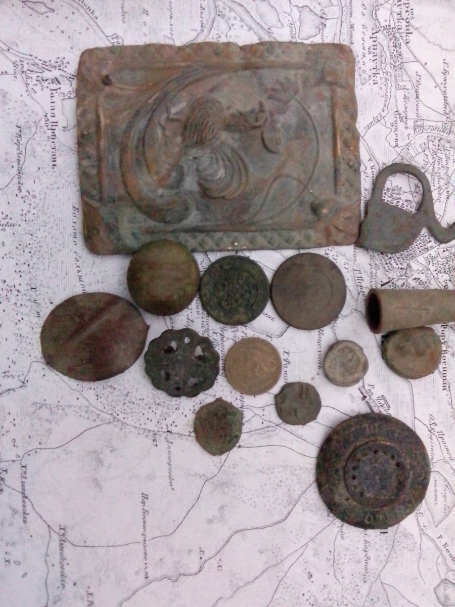 Во второй половине дня рванул на коп, попалась античная монетка, пуговка с пушками прикольная и другое...