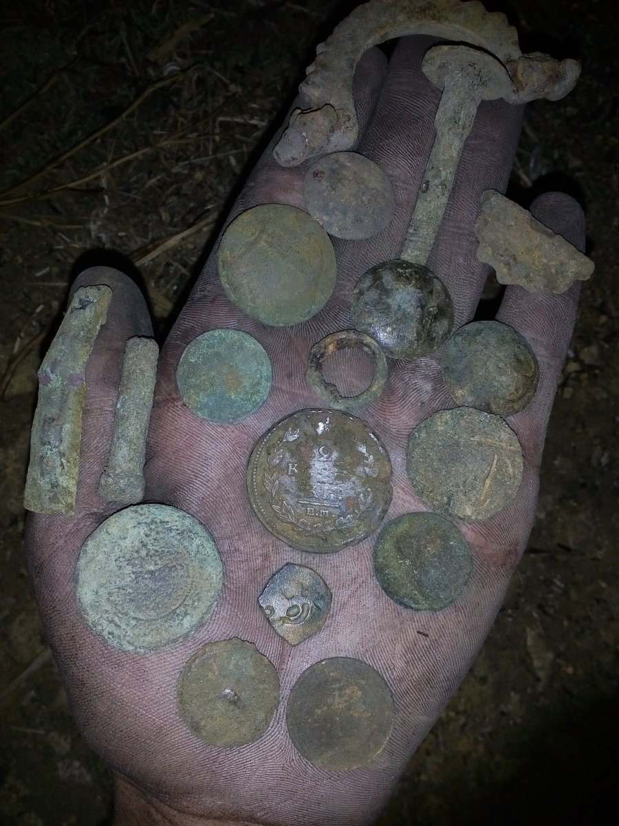 Находки хорошие, а вот как так можно руки то свои не жалеть ? Даже если их долго и тщательно отдраивать ( и то не факт..) ,всё равно как потом ими бабу ...достойно приобнять? Это всё же хобби, а не рабский труд в копанке...Без обид... Удачи.