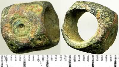Бусина с солярними символами, возможно словяни, но есть мнение что скорее до словян... Точно сказать не возможно. Наверное била вплотную одета на кожаний ремешок и служила как украшение.