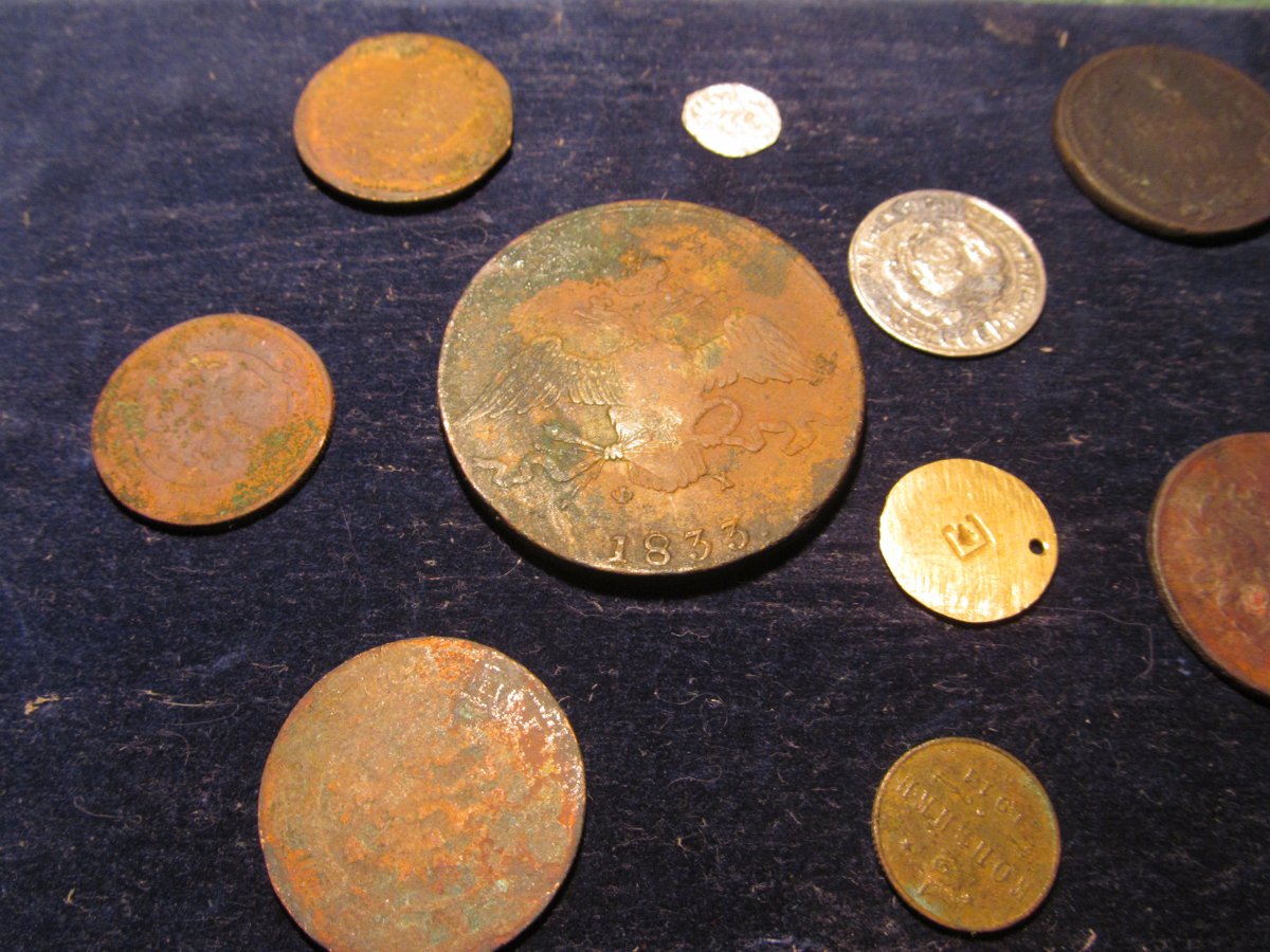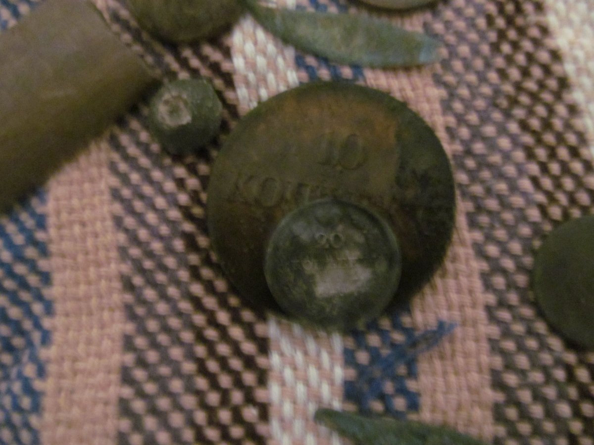 Да , гривеник -массон всегда орЁт ,шо крышка самоварная... Одна из самых больших монет рос. империи... А голдушка явно с мониста... Одна не должна вроде "прятаться"... Ищем-ищем....