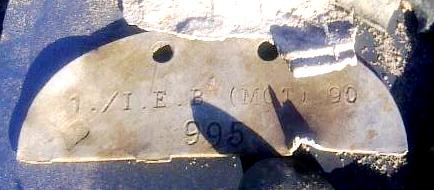Занялся расшифровкой жетона 1./ I.E.B. (MOT) 90, вот разшифровал и получилось 1./ I- пехотный,Е.- запасной, В - група крови 3, МОТ Motorisiert моторизированный, 90, и вот что получилось 1 рота 90 моториззированого запасного (я) рота (полка) 3 група крови если ошибся извиняйте, подскажите.