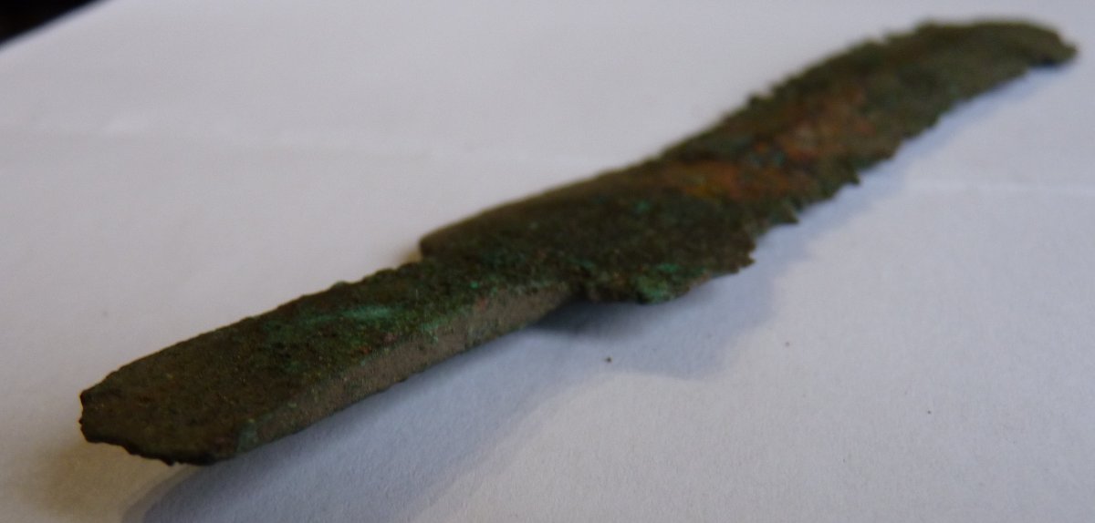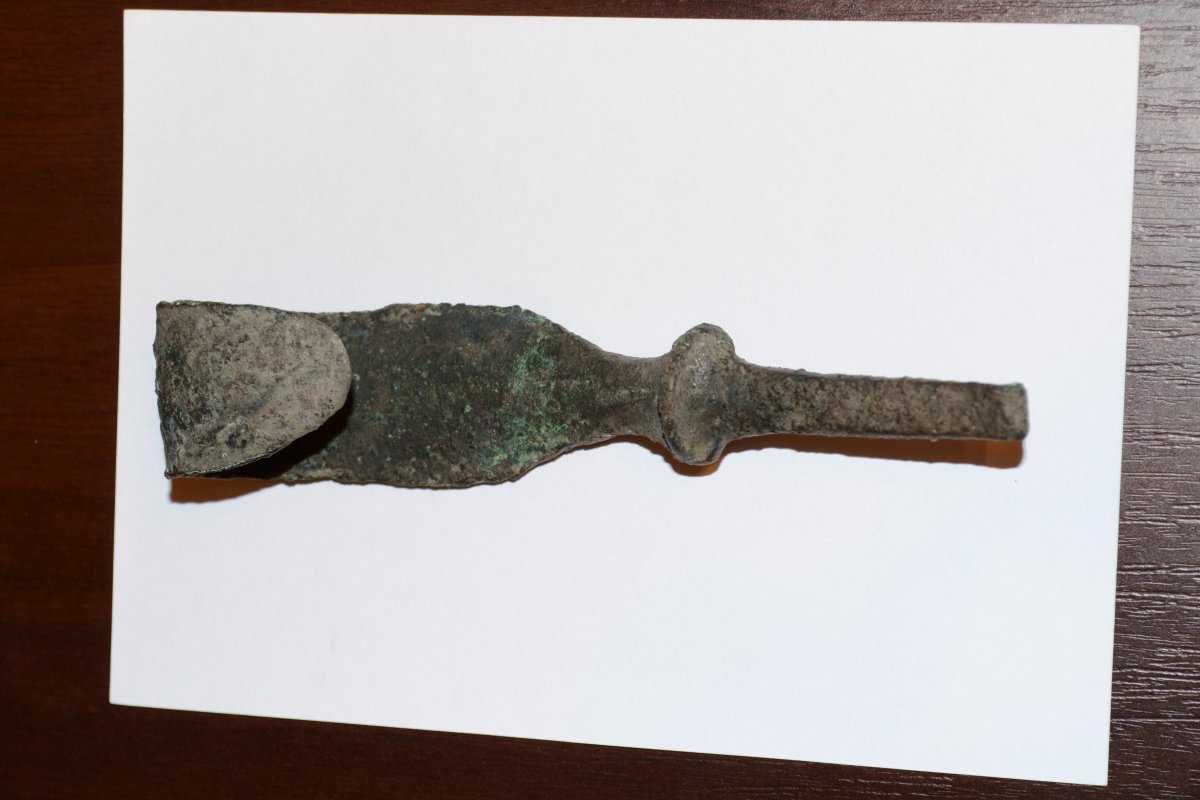 Всем доброго дня! ..существует такая копарская примета: чего копнул с первого сигнала так и весь коп пройдет. Короч, первой была гильза ППШ.. ну и понеслась... И под конец копа, нежданчик; вроде бы нож или копье, материал - бронза, культура и принадлежность выясняю!