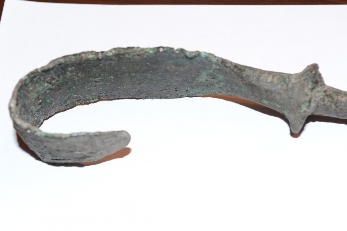 Привет всем!Вот копнулась мне такая штучка версий две нож,или нак от копья!прошу помощи в определении !!!всем за ранее спасибо!да ,кстати от краев к центру утолщается ,но явно выраженного ребра жесткости нет