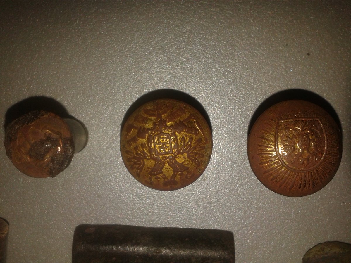 Завтра не еду, я сегодня от души покопал! как то так) зажигалка выпала вот такая, рядом моя для сравнения, пряга попалась " Х.Д.У.", пару пуговиц в позолоте, и прочий шмурдячок)) А да и что за штука такая с двумя петлями бронзовая, два клейма стоит "3" по бокам, не подскажете от чего?