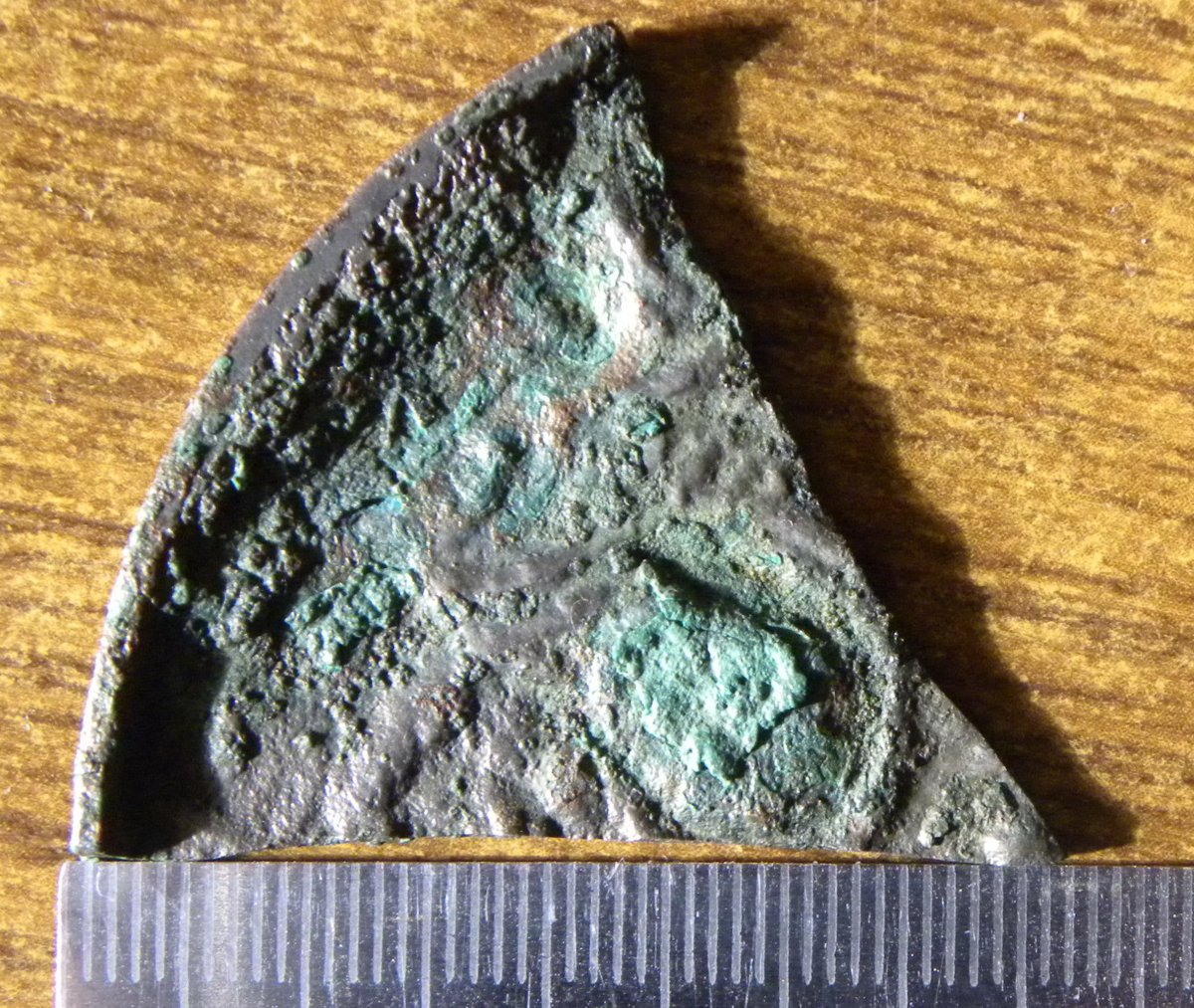 Возможно. Какой-то растительный орнамент,грубоватая работа, поганое литье.Только "рабочая" плоскость полированная.Рядом еще наконечник был.Ну примерно такой, как мы считаем скифскими. А может у татар тоже такие были? Или только железные? Почему мы их не находим? Покажите мне татарский наконечник?