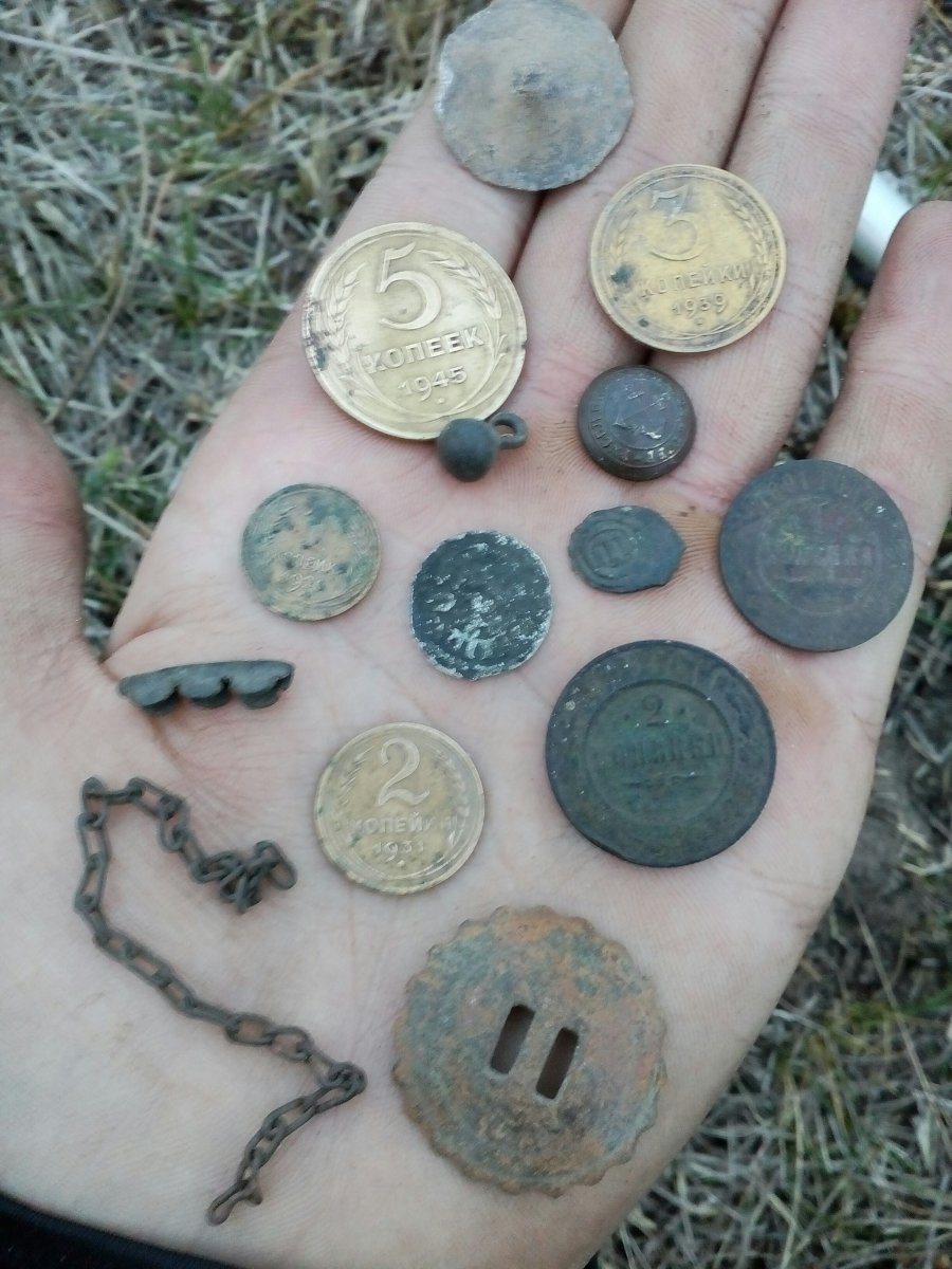 Сегодня, прогулка в Солонцах все бито перебито. Пуговка параходное общество и пятак прыятного удевили. Всем удачи и красивых находок.