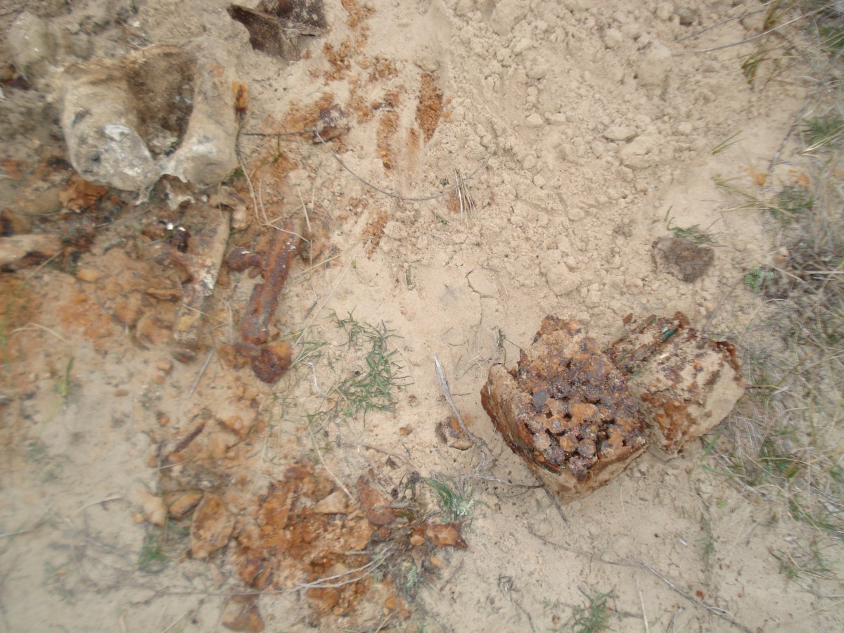 Зацепил я позицию пулемётную сегодня немецкую , стал углубляться настрел би метал , лента мг, и боец( пришлось почти день выкапывать втроём, и как у зналось позже: голые несколько бойцов останки как выяснилось при копанные после боя,ни формы ни пуговиц не ремней амуниции не чего. каски стволы я вообще молчу. Искали зацепку не чего. Позиция была переходящая , на правую сторону немецкая на левую наша , сгнившие наши патроны ,также птр гильза, лопата как всегда,алюминиевый бачёк,много ракет гильз.Железные длинные это тоже с ракет ? Поисковикам сообщил уже, после праздников продолжат. Предположение два наших. А чуть дальше зацепил нашу позицию пустую , на сгнившую каску и подкову с утюгом.