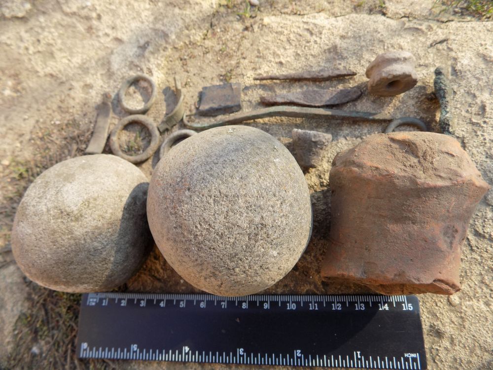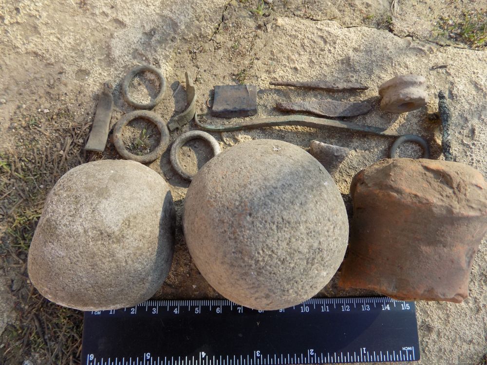 Еще хочу спросить по последнему воскресному копу - ничего интересного не попалось кроме проколки большой бронзовой, несколько колец бронзовых, пару прясел свинцовых (одно похожее на ролик первый раз такое попалось), сточеный до беспредела железный ножичек и остатки железного наконечника и обломки спинок фибул. Но самое главное удивило что среди россыпи керамики попадались разбитые пополам каменные шарики думал что остатки терочников но обнаружились парочку целых практически идеально круглых шаров и больное воображение начало рисовать орды племен нападающих с катапультами и пращами на мирное греко-римское (судя по фрагментам керамики) селение. Хотя может эти шары использовались по другому назначению - для терочников маловаты будут. а для пращи в самый раз и почему так много битых? (каменая стена там была вначале нашей эры 100%).