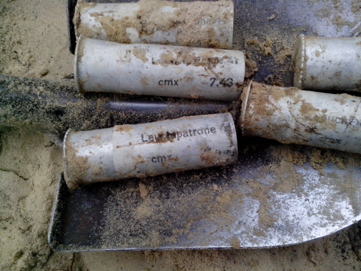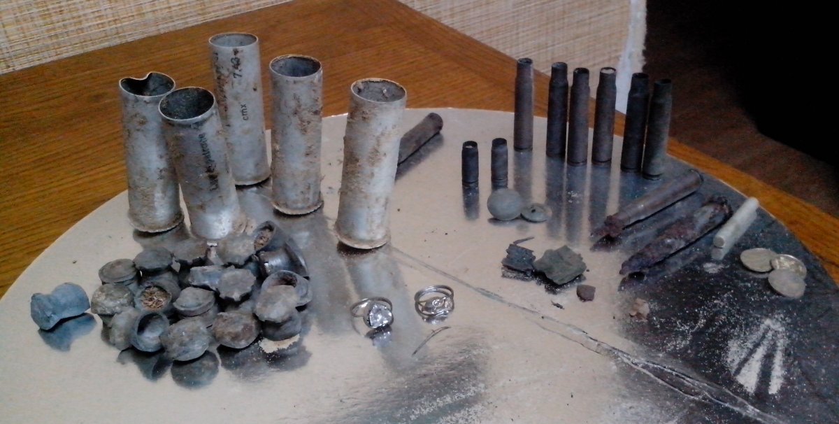 Земля - бетон, но под травой еще нарыл загадок наверное на закрытие сезона в этом году. Обломок бронзового ножа это понятно но очень маленькие проколки в обеих на конце тоненькие иголки еще не попадались - что можна было прокалывать такими не знаю но если нанести краску то вполне можна было делать какие-то татуировки или рисовать на чем-то мягком: необоженном глиняном горшке например... И еще две закрученные бронзовые иголки - то-ли серьги то-ли непонятный инструмент для шитья или скрепления чего-то - отдалено напоминают по форме и размерам современные хирургические иглы только без отверстия под нитку... и под конец серебренное полукольцо - заготовка под серьгу? Или височное кольцо?