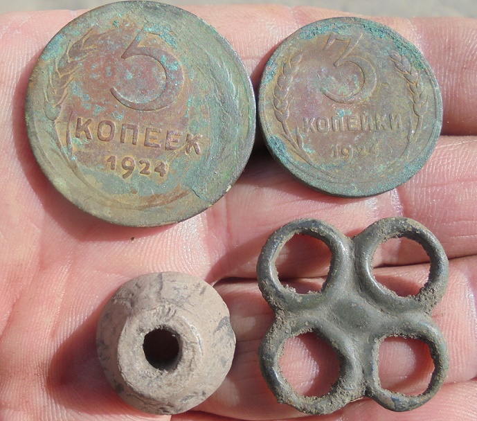 ...какое там серебро, даже не рыжик! :) 1964! Рядом с ним 2 коп 1916 (Николая II) и мелочь аборигенов с 1921 по 1992.... Жаль, дед Шуберт ничего не оставил по этим краям..