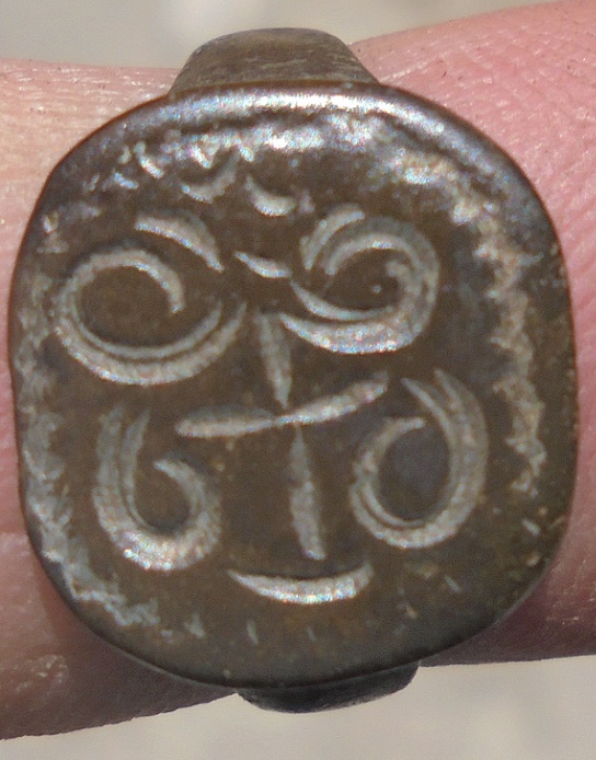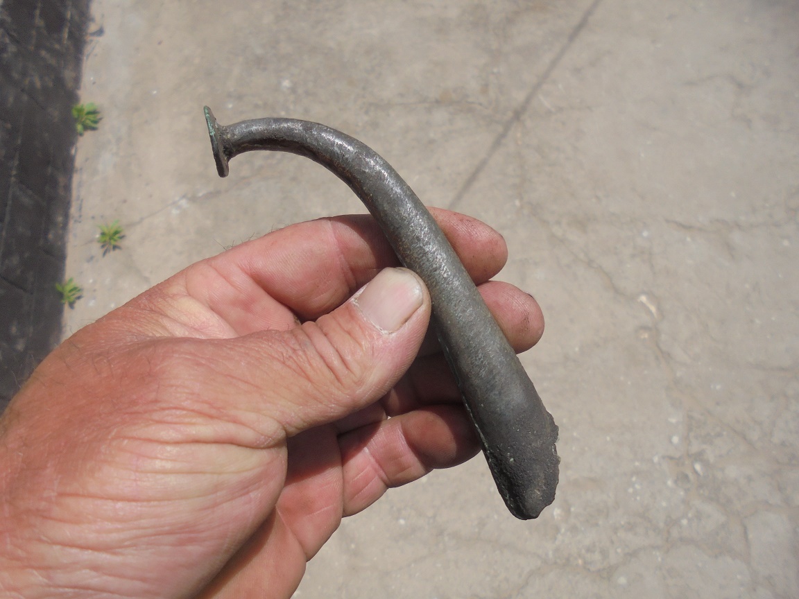Копнул немного . Перстенёк татары , был посеребрен. Клювик с кувшина , думаю татарин , остатки серебрения , грубый шов.