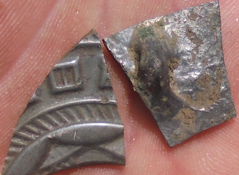 Доброго вечера Панове! С утра выскочила Боратинка(1665г, медный солид, или шеляг), позже еще 7 штук (1661-1666гг). Дальше сюрпризы со ста квадратных метров; 1/2 гроша Южная Пруссия(Фридриг Вильгельм-2), непонятная номиналом '1' чегось , 1 и 10 фашистов (1941-43), и, курва, сломал фибулу лопатой.... да.. пуга, РИА-12 линейного полка - с каких в этом перемесе ...?!!