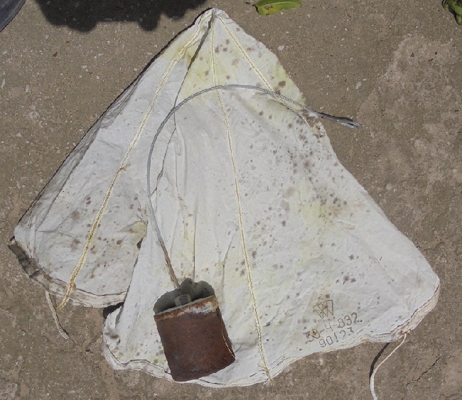 Осветительная мина , сработавшая . Привёз и парашют с контейнером , правда воины стропы срезали на шнурки.Кому нить подарю.