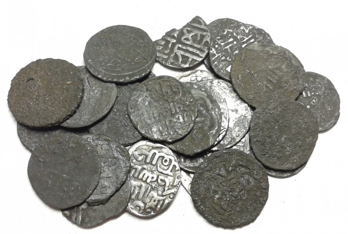 Разведка в поле дала пару приколов,7 монеток.Земля под пар для рапса,поеду ещё разок. Находки не чищены,монеты просто водой.