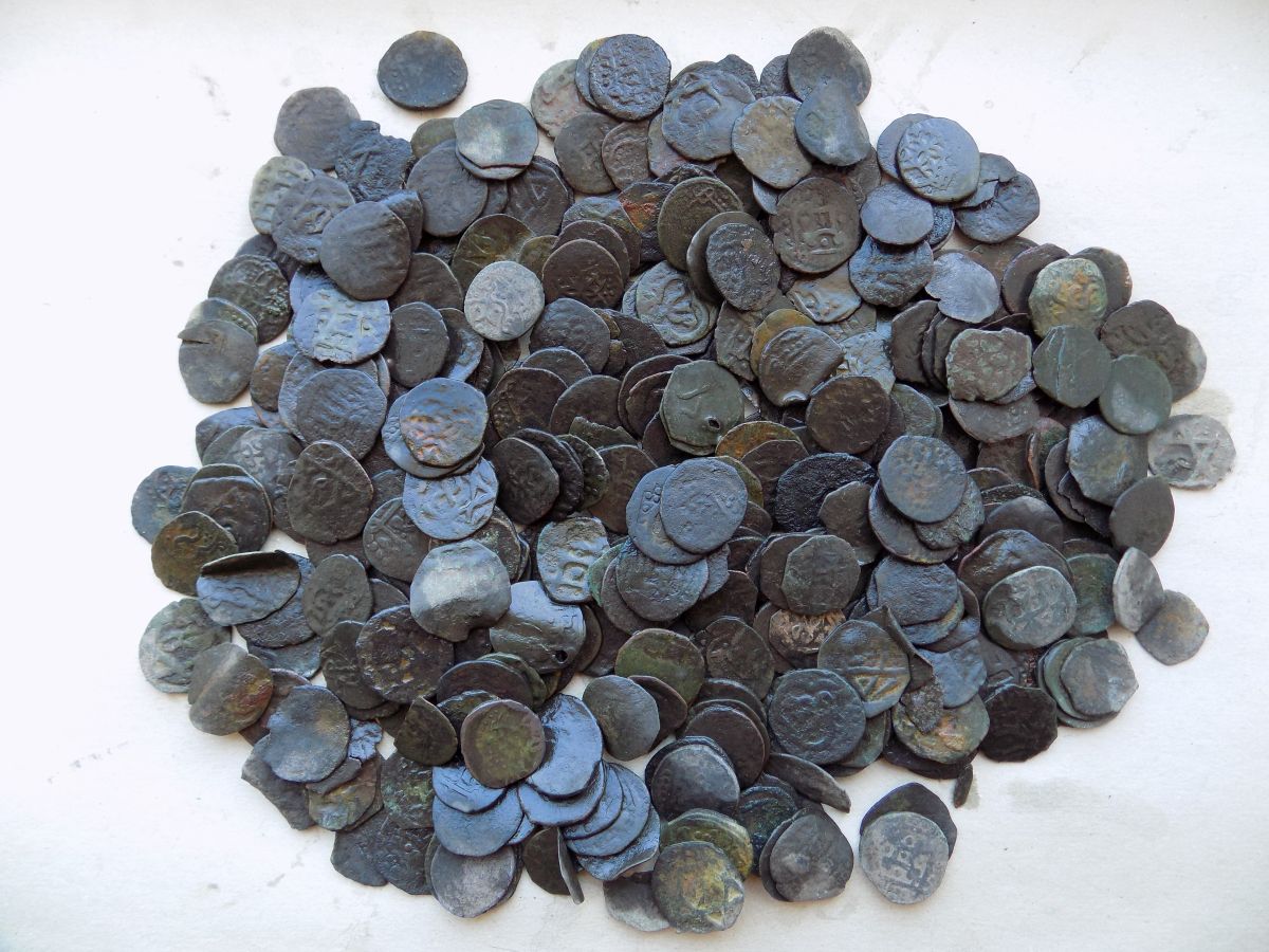 В принципе процентов 90 живых, но не чищены, есть с остатками посеребрения - видно всовывали на вес как данги - мошеников всегда хватало... Есть просто лысые кругляши - наверное с той же оперы. А серебренные монетки надо наверное продавать по одной из частых только три там что с "БГ" и то на аукционе до двух сотен за их иногда дают.