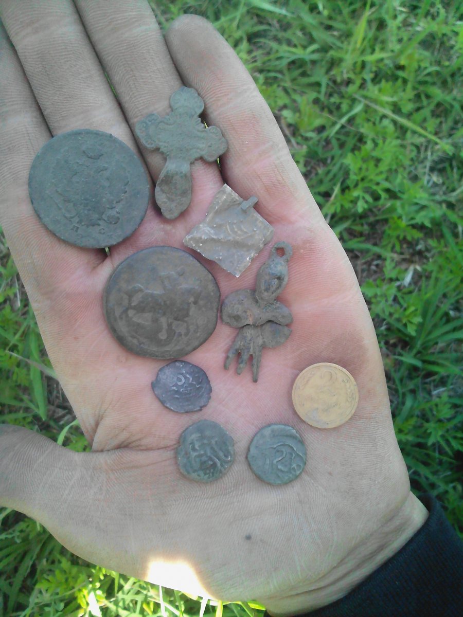 Всем привет . Поехал вчера порыбачить и прибор взял на всякий случай .Отвлекся на полчасика, не много но есть .Монетка не типичная для нашего региона .