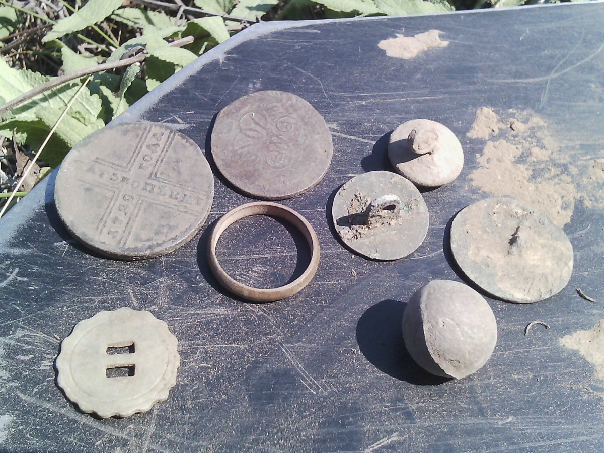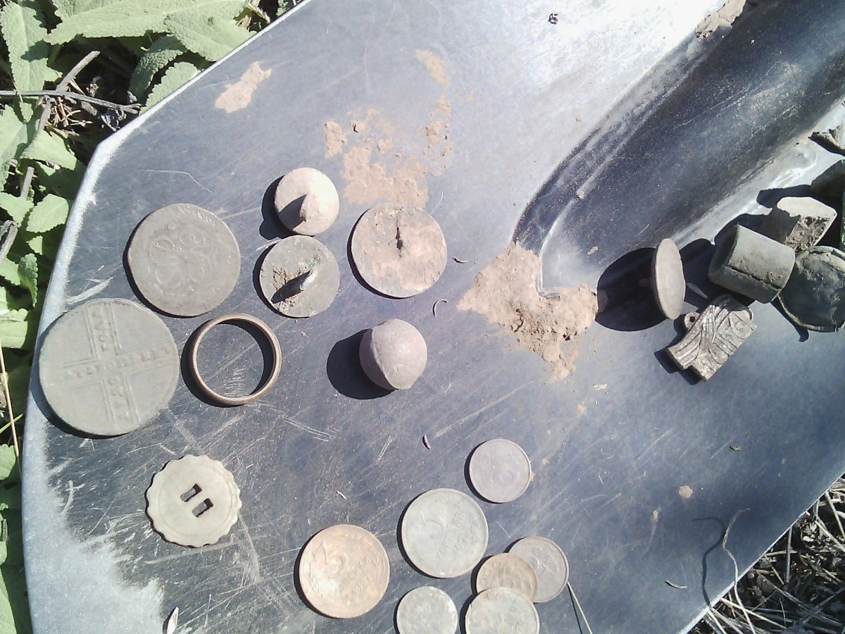 Всем привет. Вчера немногось получилось покопать земельку, находок неособо, но все же... Пяток монеток, какая-то штука то-ли от сабли, то-ли от кинжала и наконечник. Всем добра!