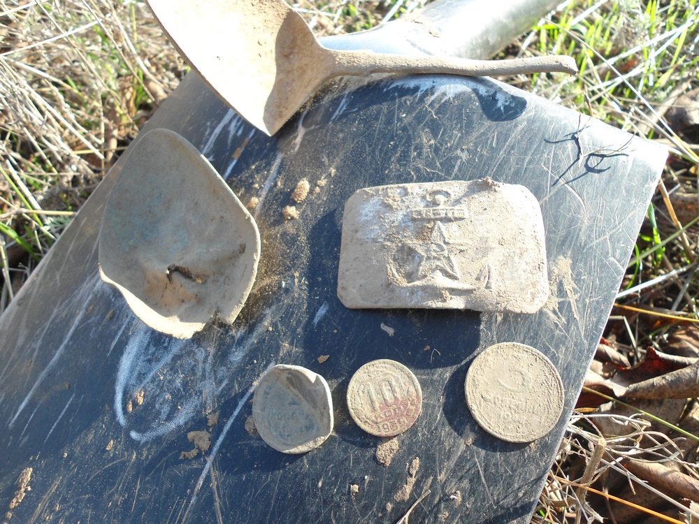 Сегодня поднял 5 рейхспфеннигов (reichspfennig) 1938 года и немного мелочи, в том числе и пуговка на 3 дырки =)