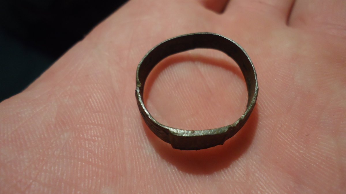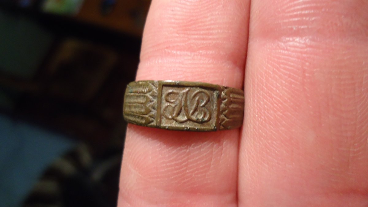 Сегодня наконец то выбрался покопать.Всё не фоткал.Поздний царизм,советы и всё остальное киснет в мыле.Вот перстенёк порадовал сохраном. Да и денежка странная...Вся в "окалинах" и монетный двор не понятный. Но не ЕМ .Мне вилится первая "Л".