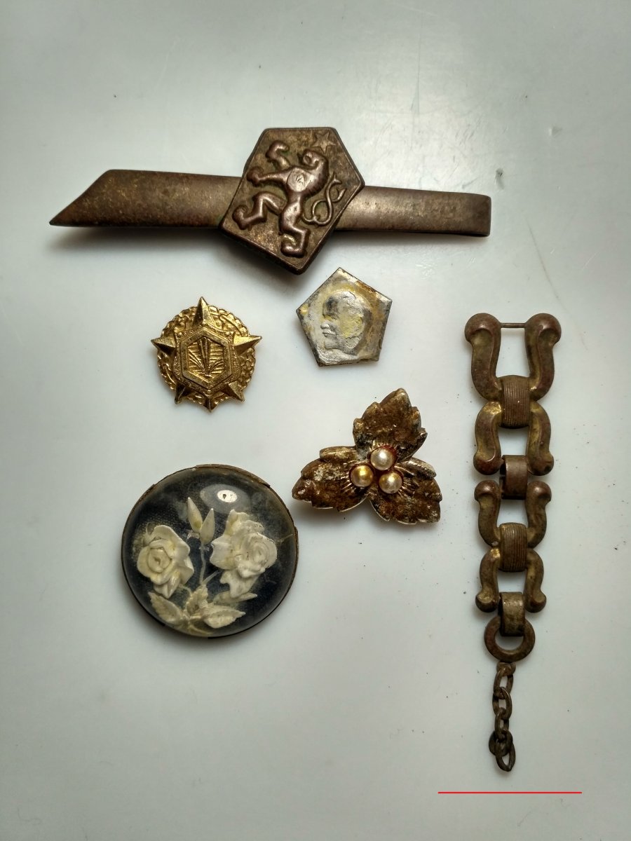 на последнем фото самая верхняя -"дембельская" заколка для галстука солдата (сержанта) СА, отслужившего в ЦГВ ( это бывшая Чехословакия), как то так...