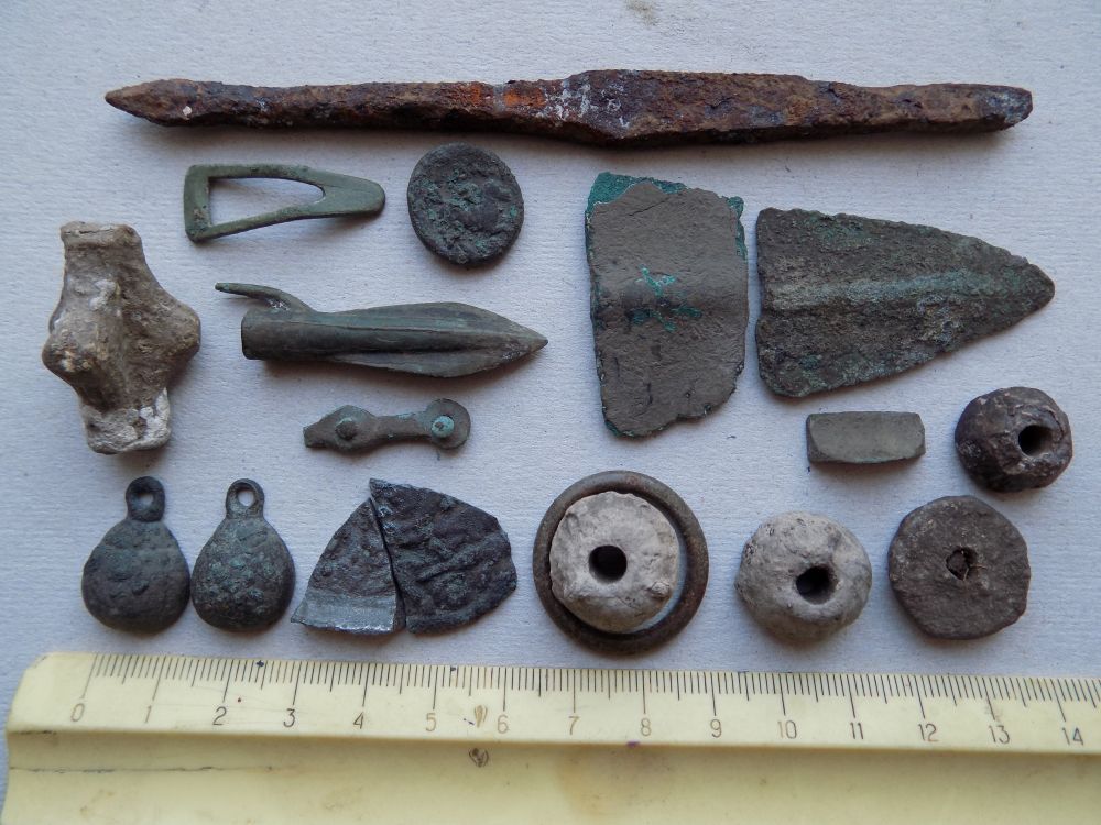 На вашем фото то,что в виде булавы-однозначно кистень и под ним 2 предмета с петельками тоже. Остальные не могу рассмотреть ,но скорее прясла. С Ув!