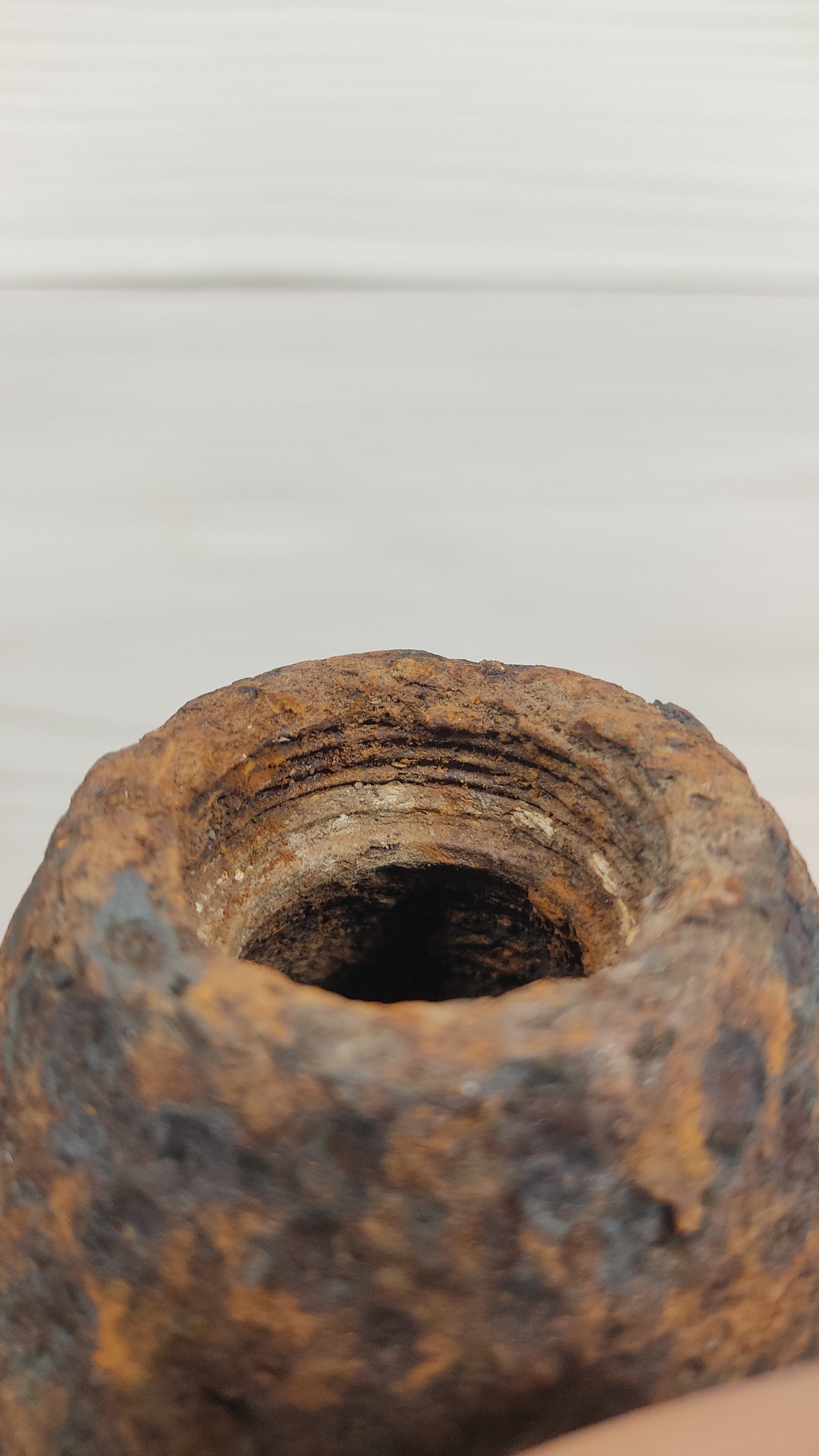 Так , всем привет , опытный на месте. (Кто не в теме имел дело с химом риа пмв) Для хима характерен , штифт в резьбе , и цельнокорпусный взрывак , хотя до марта 1916того года использовались и составные шнайдеры. Но протечки давали о себе знать. Вот осколок хима ,( с квадрата обстрела поднял вместе с целым ) и вот такой штифтец у него в резьбе стоял. Штифты были как мостичные так и медные.