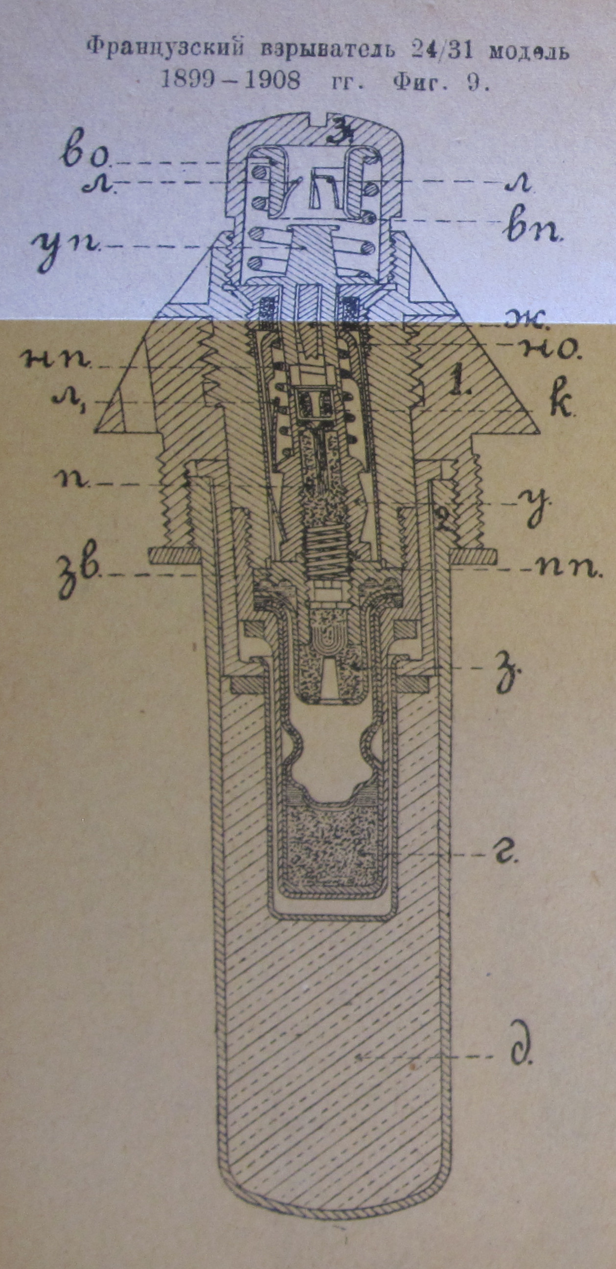 ...дуже даль що немає картинки з "Фіг.9" (фото 1.) колись було таке розрІзано - "французького тіпа" для "мєлінІтових гранат старого образца"... (фото 2.) З.ЬІ. ...на рисунках часів ЦР присутня літера "Д" вписана в коло, так що ці підривачі можна спокійно відносити по часу і ДО ссср... З.ЬІ.ЬІ. ...на деяких деталях/частинах були французькіклейма ( ! )