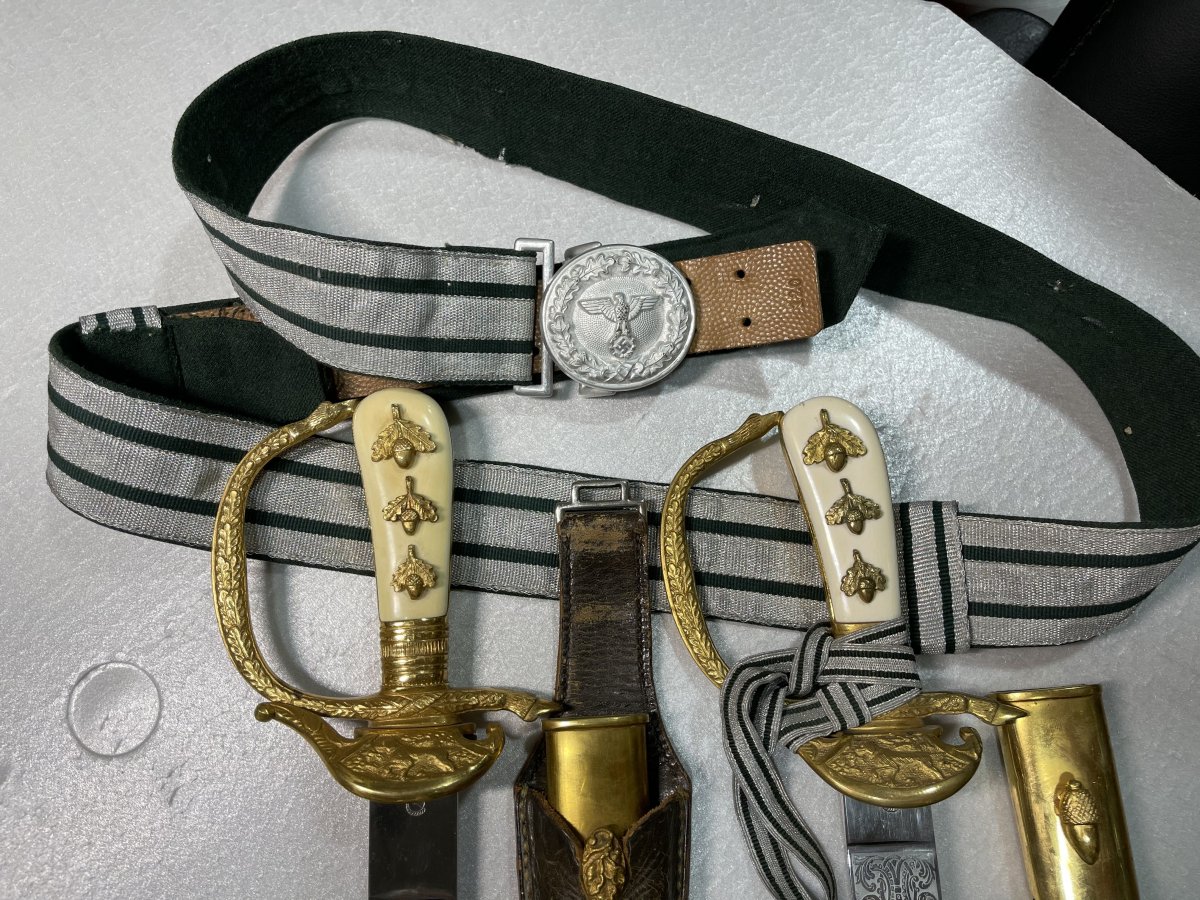 Хочу показать в теме полную комплектацию ношения хиршфангера. Если ножи проходят на форумах, то думаю интересно увидеть и парадный ремень имперских лесничих на котором носили подобные ножи какие изображены в теме. Встречается довольно редко.