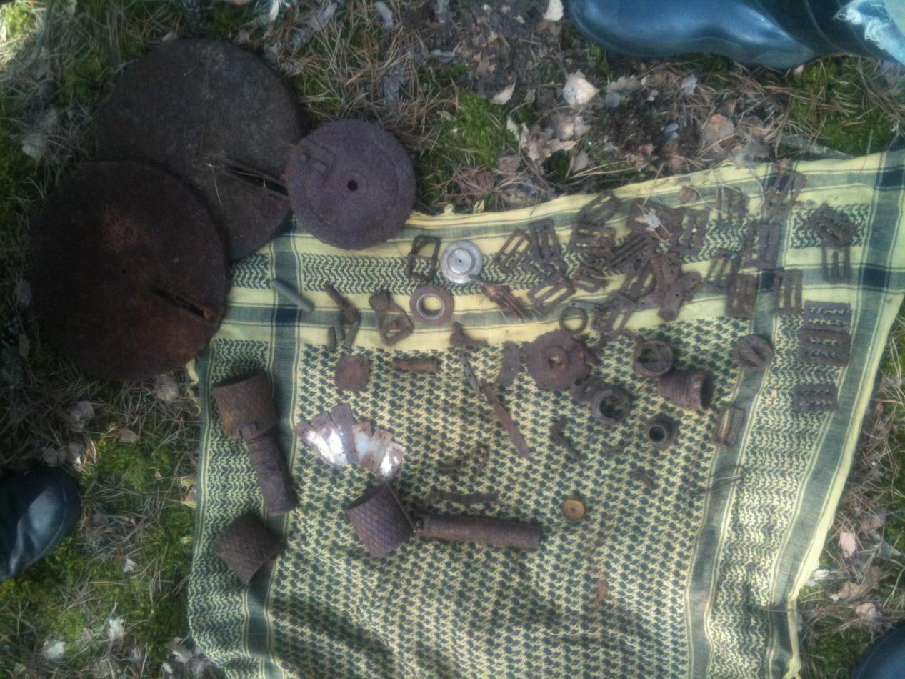 Просто ещё раз убедился: ищущий да обрящет. Главное, не суетиться. Бил лагерь, найденный при выходе из леса в поездку №1. Тогда пробежал его минуты три, выскочила фляга, люверс и сопутка. Подумал - австрийский лагерёчек, нет. Оказалось - и те и те жили. Сейчас буду пытаться определить, в каком районе точно связисты жили, будем ямы от землянок выносить полностью. Может, не одна пряжечка там осталась. Тем паче, недалеко от лагеря - кладбище (метрах в 100). По идее, хлама должно быть... Нелюди какие-то на кладбище побывали, лагерь некопан. Может, перезахоронение, конечно... вряд ли...