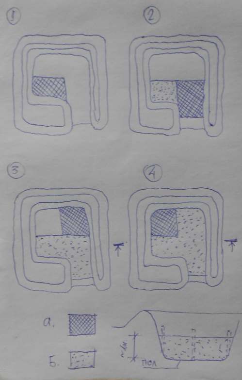Да, без фотика не получилось отчёт сделать как надо. Свой дома оставил, думал товарищи подъедут. А они не подъехали. 3 дня без котелка, сухпай лопали. Решил занятся именно археологией и поднять блин, у которого были монеты, пуговки и год тому прягу гренадёрскую поднял. Но, увы, он оказался практически пуст. Битая фляга, шодуарка, 1 копейка и колотая плита. Зато приятен сам процесс. Выносил в 4 этапа. Сначала выбил угол у входа с развалом кирпича и колотой плитой. Потом пошёл против часовой стрелки, отбрасывая землю в уже выкопанную часть. Процесс занял часов 5 с перекурами. Работал один, камрад предпочёл лазить по лесу по верхам (нашёл обручалку).