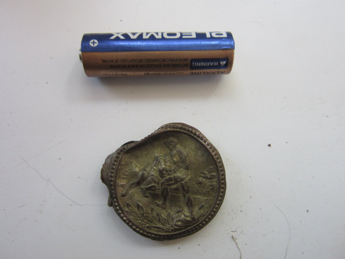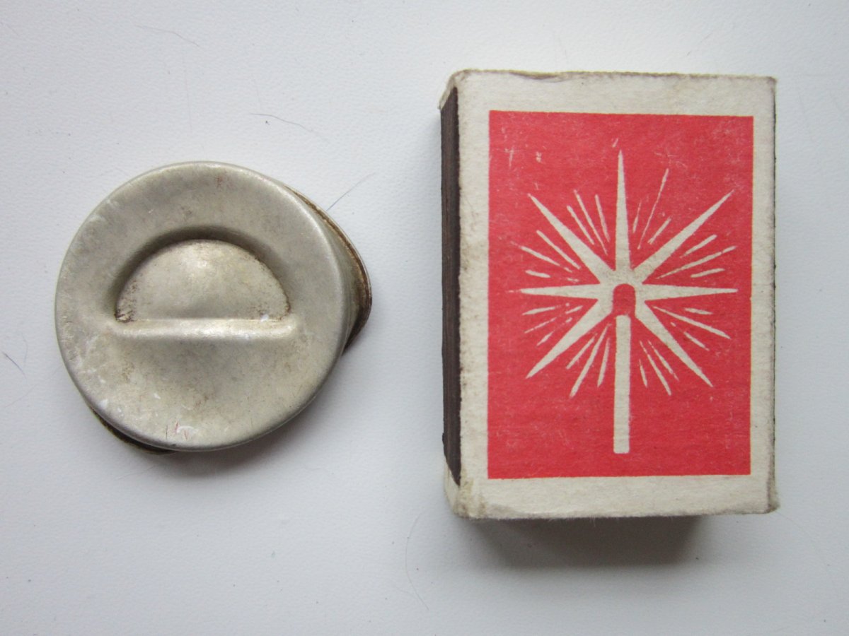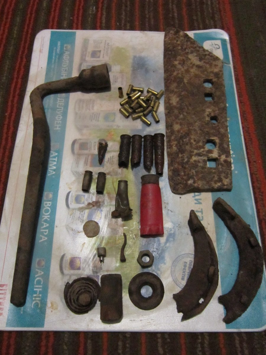 От плуга нож. Ага - лемех называется. Запамятовал. Пружина от крышки колотухи м24.\ Рядом - кажись зажигалка. Интересная весчь Только разбирать осторожно - тонкий метал, может поломаться.