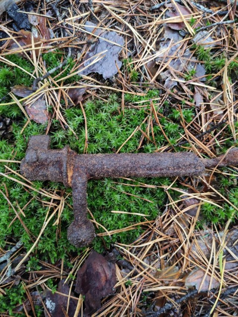 Вот такая метровая железка которая была под мхом. Наверное от сельско-хозяйственной техники. А от чего она?