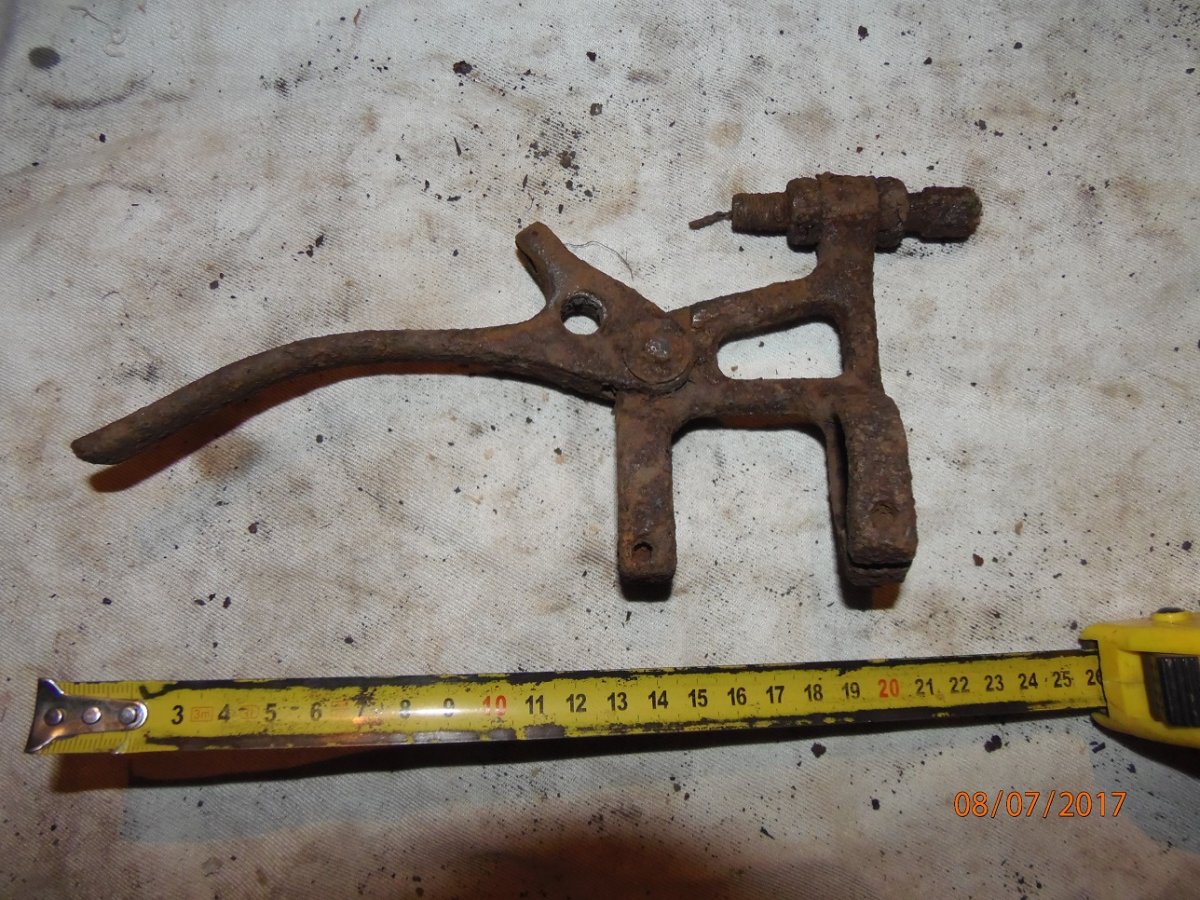 Поводок автодвірника схожий на "Москвіч" 407. Частина від хромованого універсального люстерка заднього виду, випускалося як опція з кінця 60-х для всіх легкових авт срср. Шприц для мастила "нігрол" щоб змащувати різьбові пальці і хрестовини ходової частини авто 20 сторіччя.